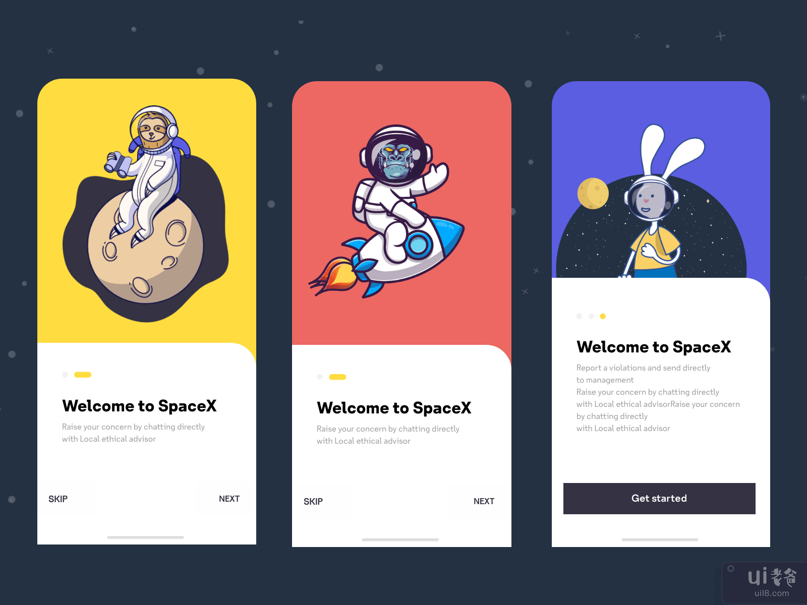 空间移动应用程序载入屏幕(space mobile app onboarding screens)