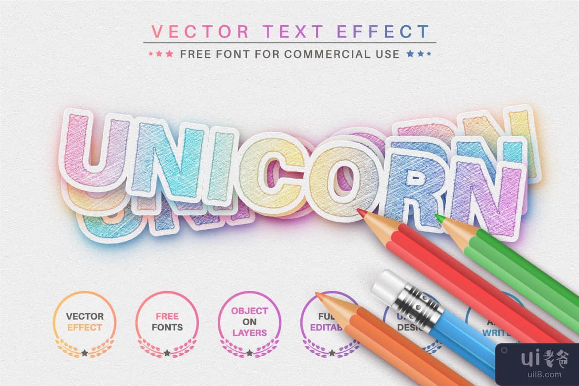 独角兽贴纸 - 可编辑的文字效果,字体样式(Unicorn Sticker - Editable Text Effect, Font Style)