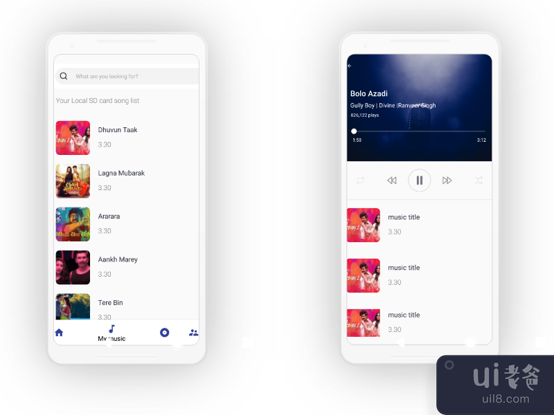 Music video player Android UI UX template kit. all XML file develop.check the demo and screenshot.