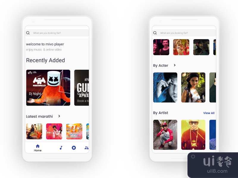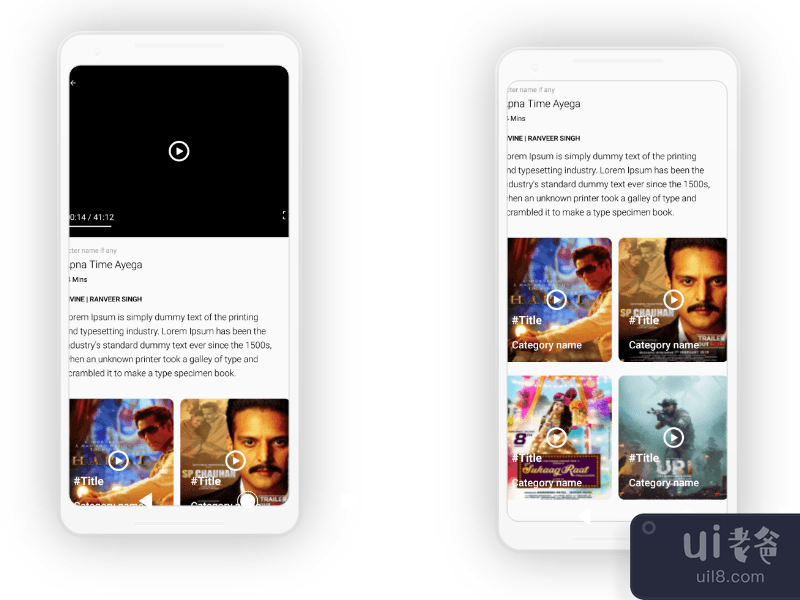 音乐视频播放器 Android UI UX 模板套件。所有 XML 文件开发。检查演示和屏幕截图。