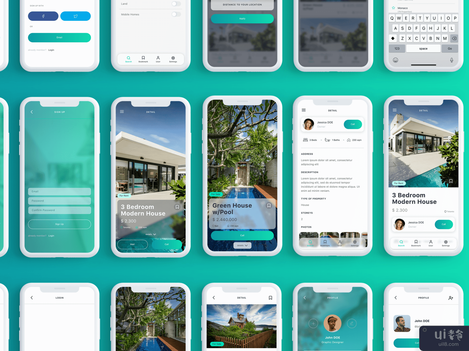 Homm 是一款现代实用的房地产移动应用 UI 工具包,专为 iOS 设计,采用 Sketch、Adobe XD 和Figma 共有 +120 个屏幕(iPhoneX 和 iPhone8)。每个屏幕都是完全可定制的,并且在符号中组织良好。
