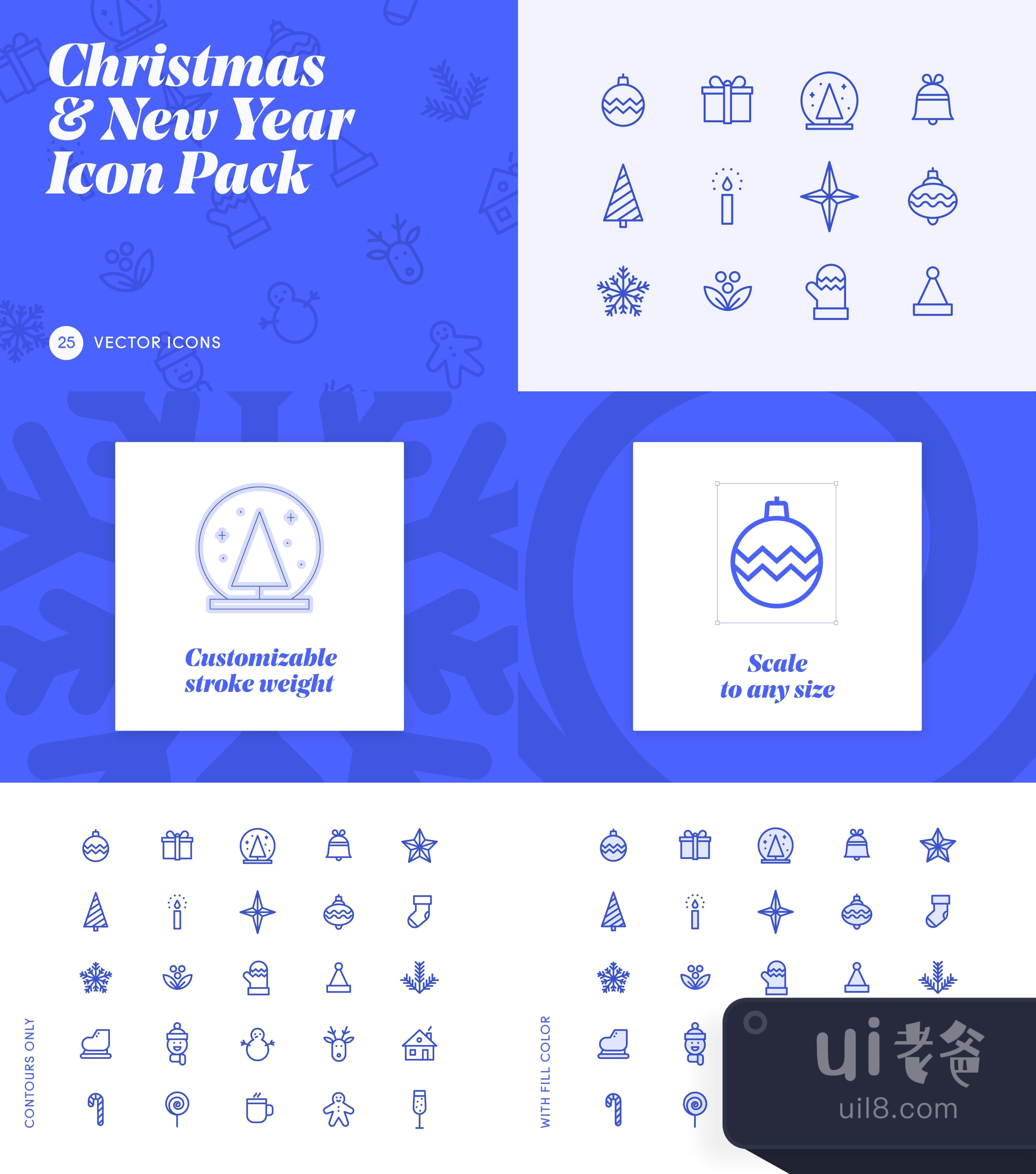 25个干净和简单的矢量图标,用于一年中最美妙的时刻