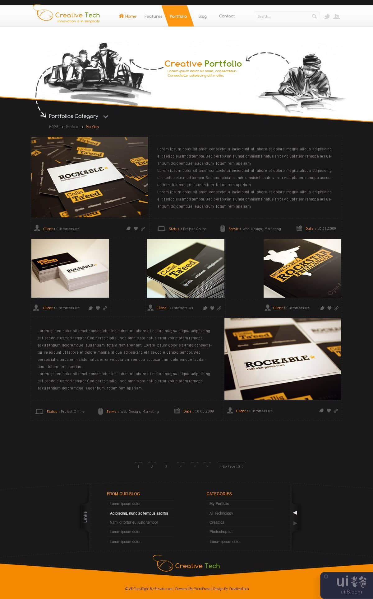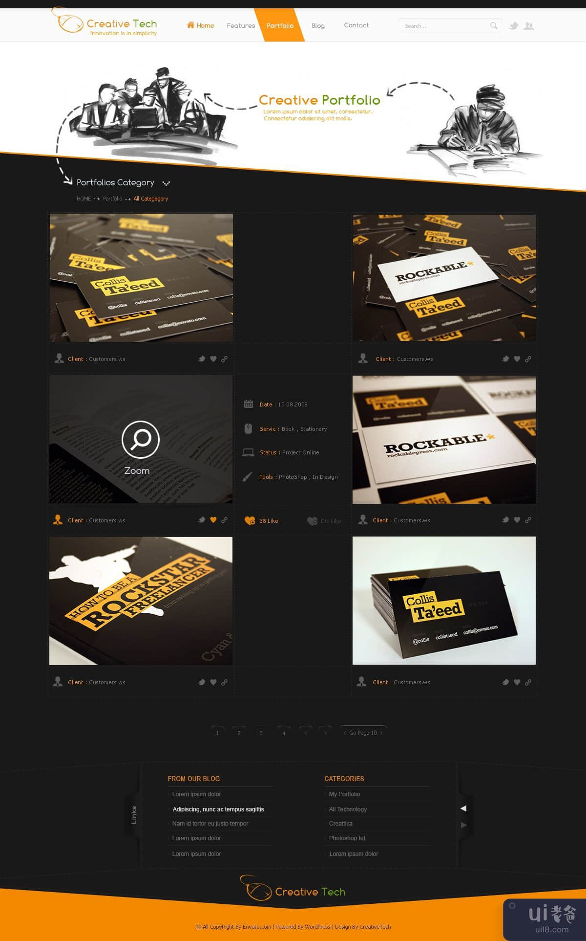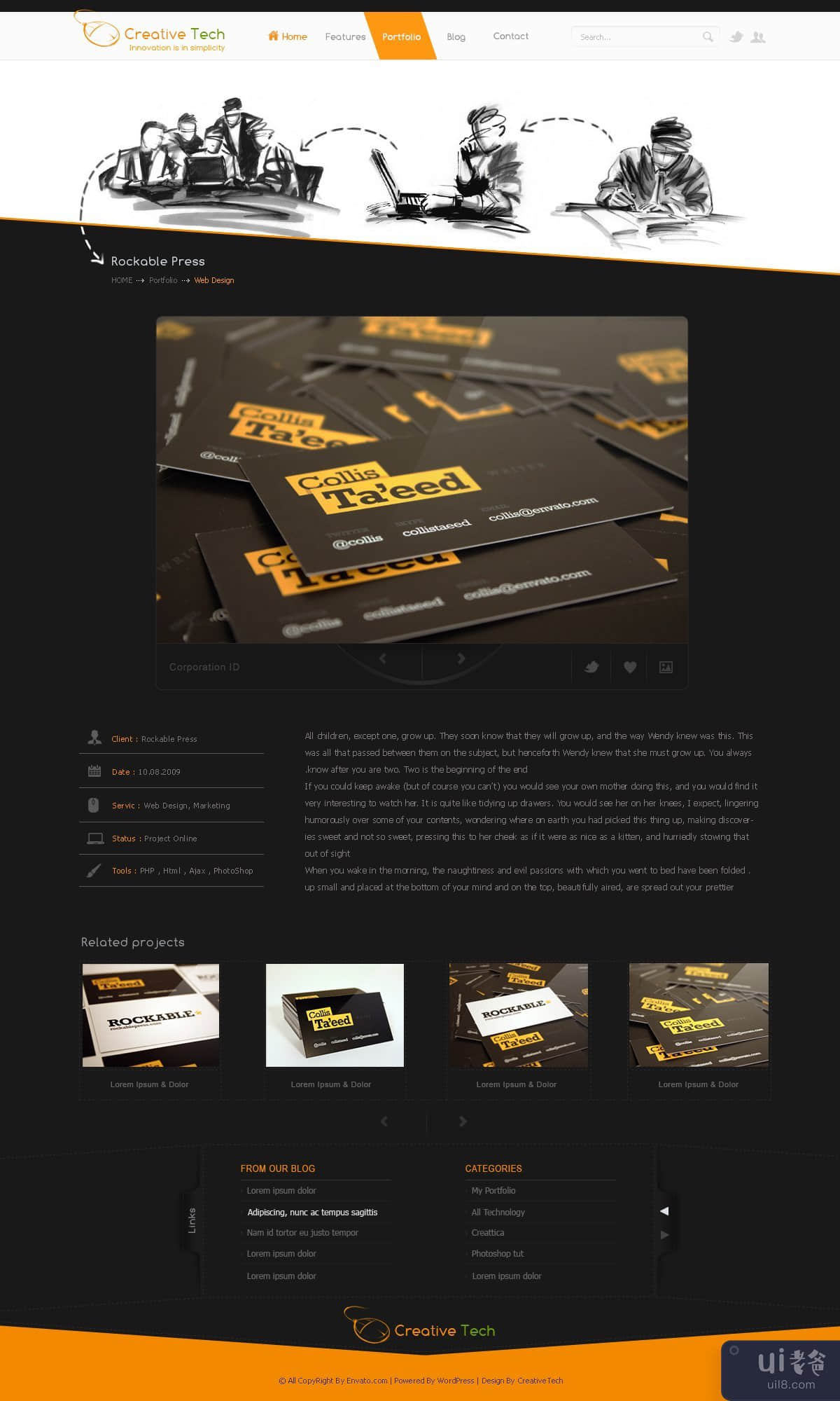 Creative Tech PSD Template is a great design idea for website of Creative Corporate, Corporation, Organization, Community, Company Profile, Personal Portfolio, News, Creative Blog, Gallery Photo and more…PSD Files Included Since this template are PSD template has 14 layered .PSD files included. Pages are layered photoshop files, each layer being properly named. The file included in this template are :1. Home.psd : Index template 2. Menu.psd : view menu design on the head3. Portfolio1 Columns.psd : Portfolio page view 1 Columns4. Portfolio2 Columns.psd : Portfolio page view 2 Columns5. Portfolio3 Columns.psd : Portfolio page view 3 Columns6. Portfolio Mix Columns.psd : Portfolio page view mix Columns7. Project Page.psd : project detail view page8. Blog.psd : blog page right blocks9. Blog Left.psd : blog page left blocks10. News More.psd : News More page view and comment design11. Contact Us.psd : Contact page12. About Us.psd : About Us design page13. Gallery.psd : Gallery page design14. 404 page.psd : 404 page design