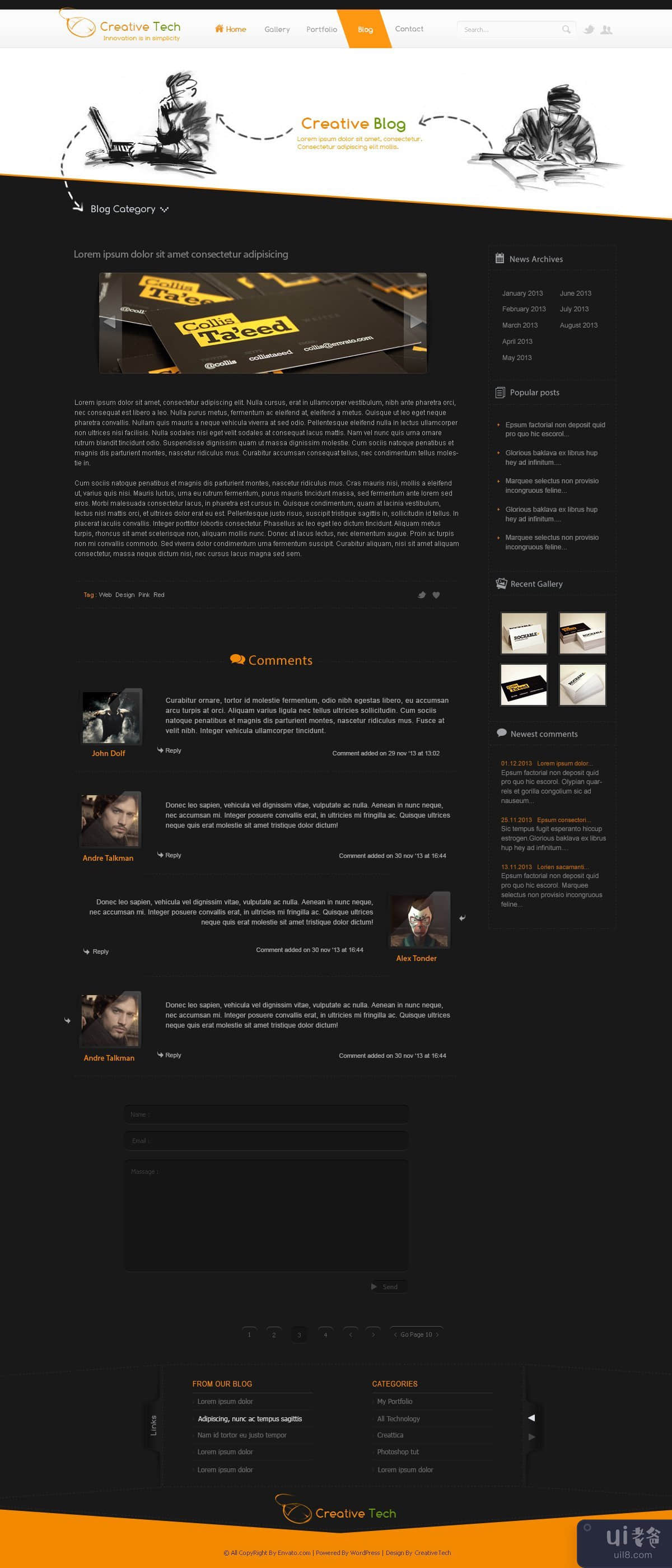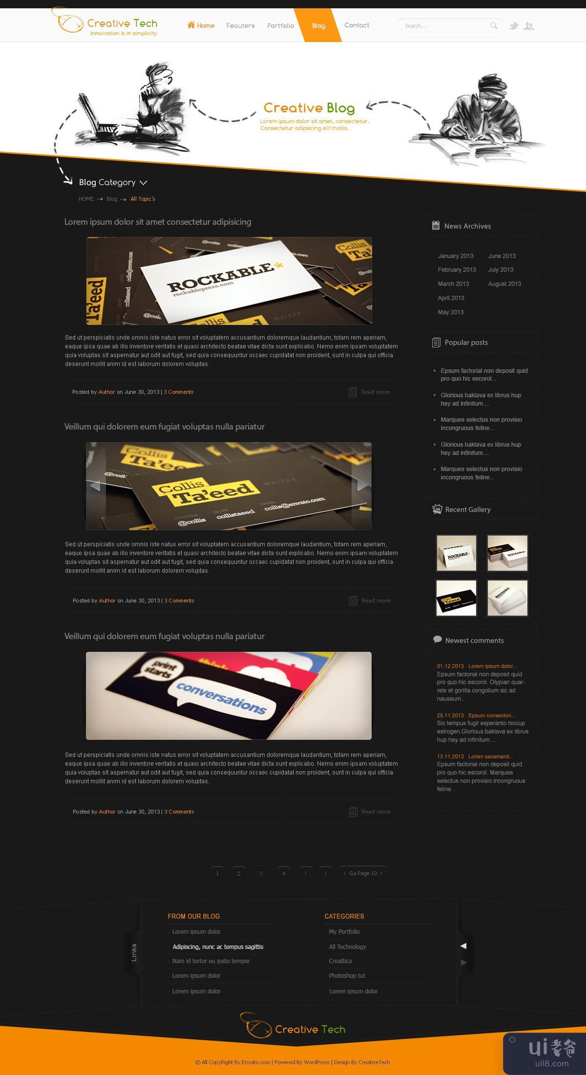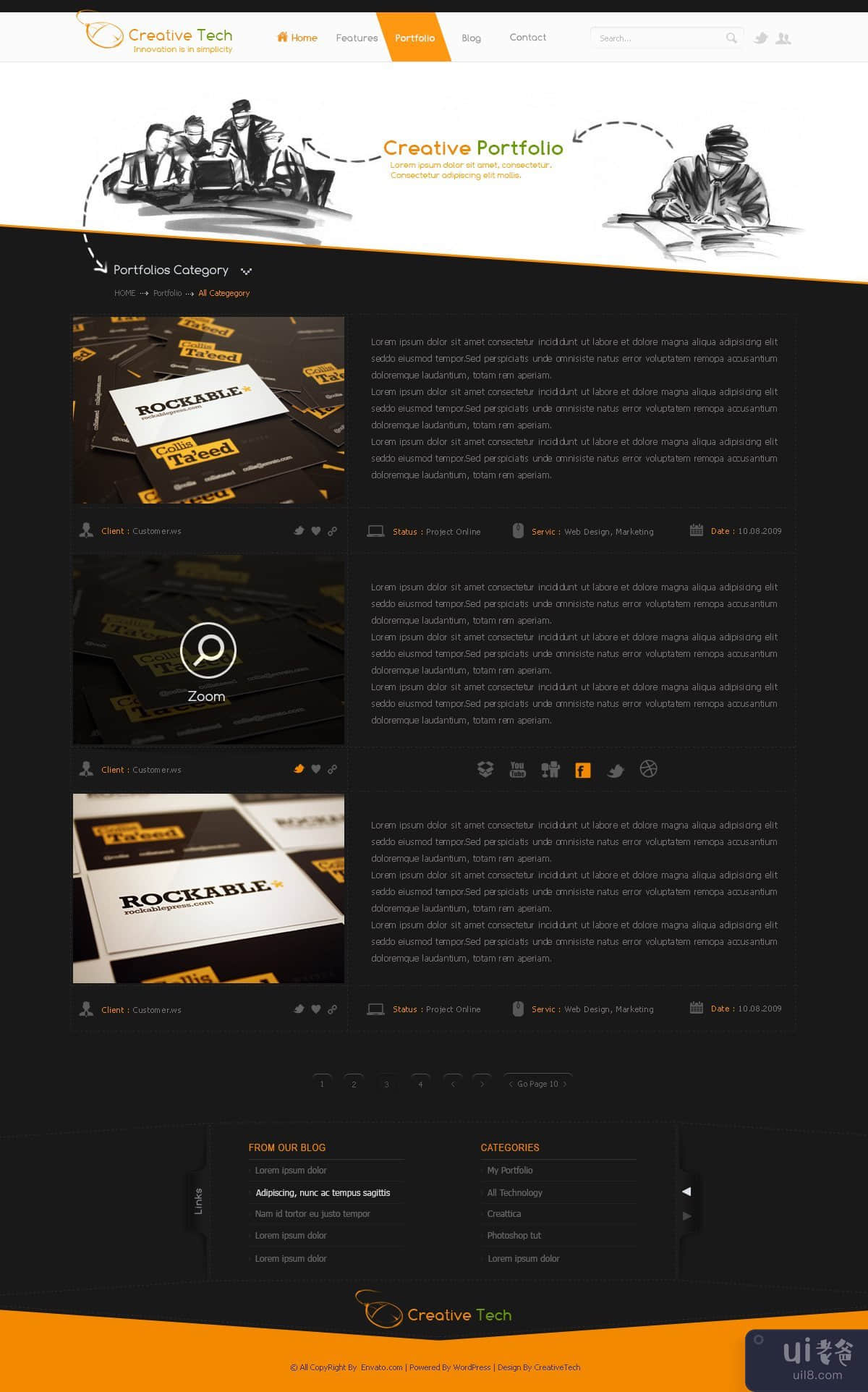 Creative Tech PSD Template is a great design idea for website of Creative Corporate, Corporation, Organization, Community, Company Profile, Personal Portfolio, News, Creative Blog, Gallery Photo and more…PSD Files Included Since this template are PSD template has 14 layered .PSD files included. Pages are layered photoshop files, each layer being properly named. The file included in this template are :1. Home.psd : Index template 2. Menu.psd : view menu design on the head3. Portfolio1 Columns.psd : Portfolio page view 1 Columns4. Portfolio2 Columns.psd : Portfolio page view 2 Columns5. Portfolio3 Columns.psd : Portfolio page view 3 Columns6. Portfolio Mix Columns.psd : Portfolio page view mix Columns7. Project Page.psd : project detail view page8. Blog.psd : blog page right blocks9. Blog Left.psd : blog page left blocks10. News More.psd : News More page view and comment design11. Contact Us.psd : Contact page12. About Us.psd : About Us design page13. Gallery.psd : Gallery page design14. 404 page.psd : 404 page design