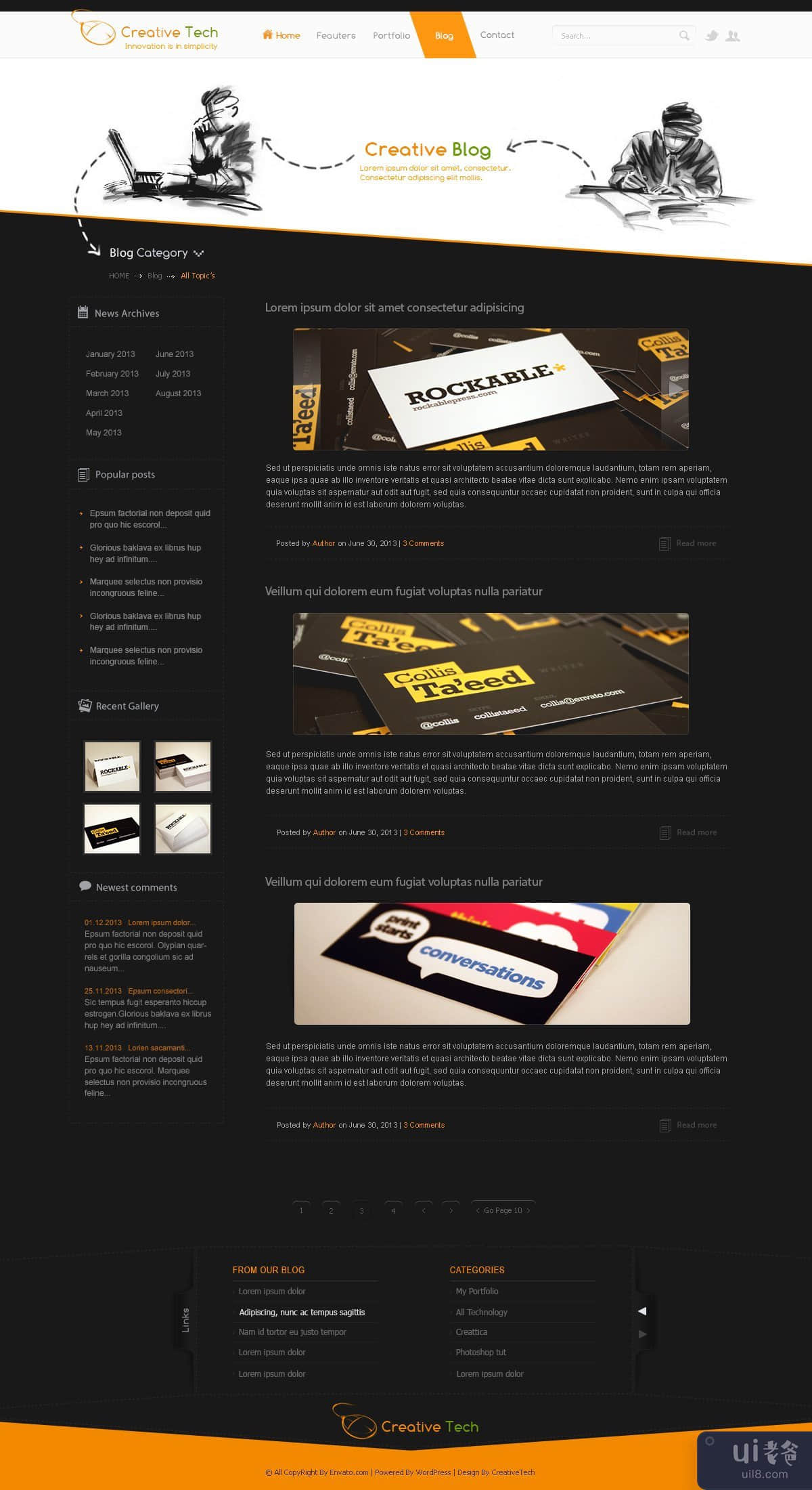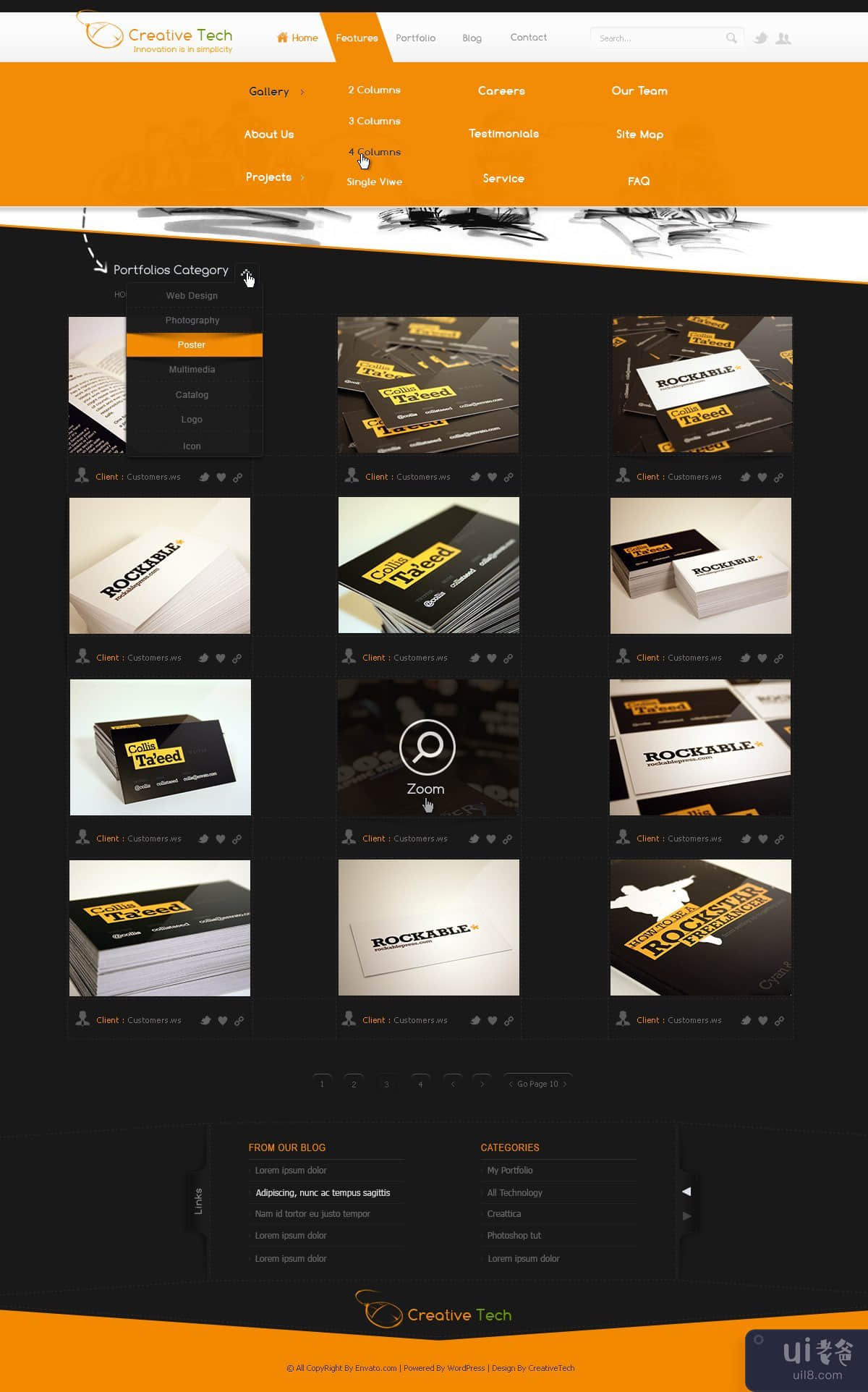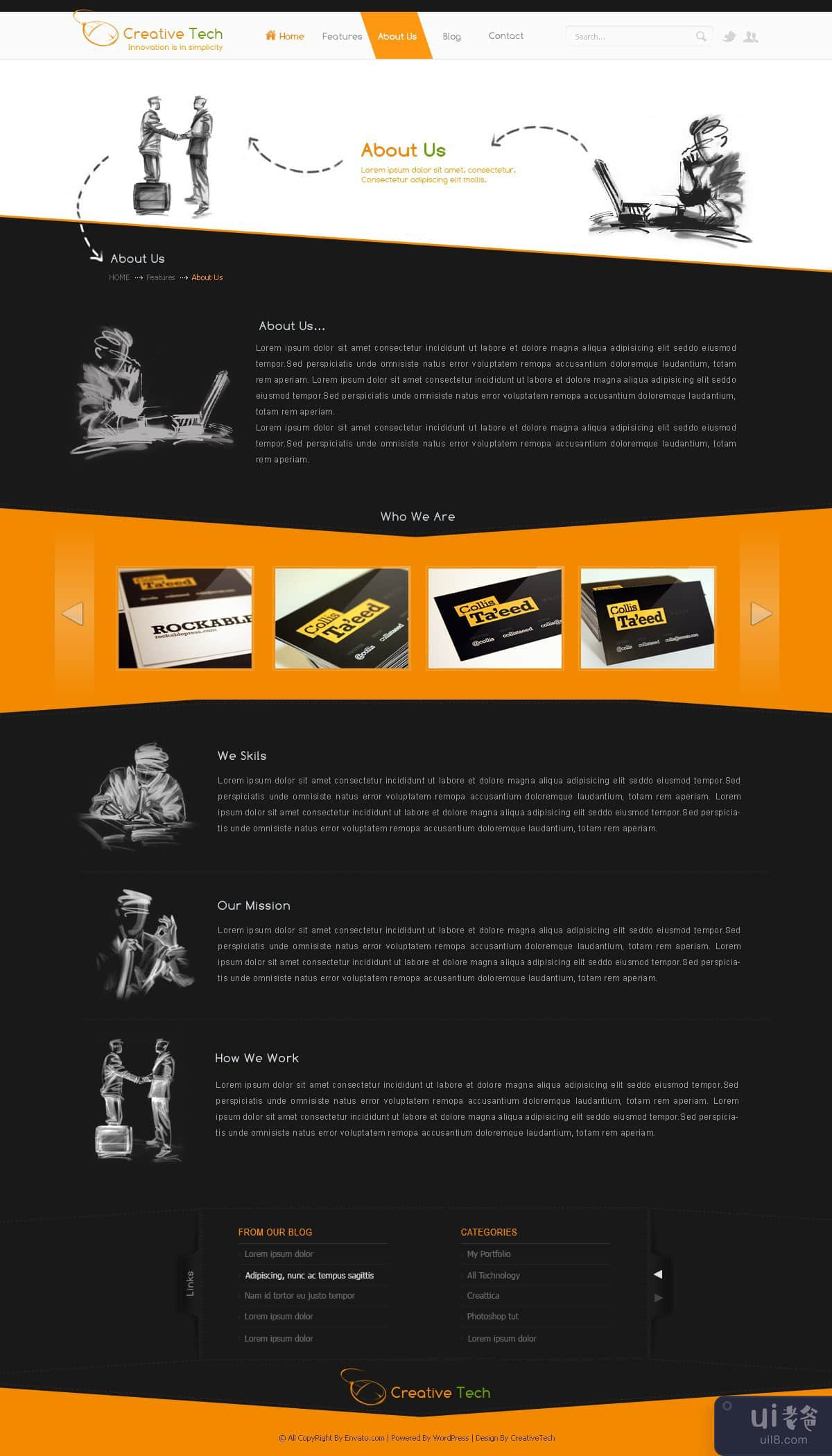 创意技术 PSD 模板是创意公司、公司、组织、社区、公司简介、个人投资组合、新闻、创意博客、画廊照片等网站的绝佳设计理念……包含 PSD 文件因为此模板是 PSD 模板有 14 层。包括 PSD 文件。页面是分层的 Photoshop 文件,每一层都被正确命名。此模板中包含的文件是:1. Home.psd : 索引模板 2. 菜单。 psd : 查看头部菜单设计3. Portfolio1 Columns.psd : 投资组合页面视图1 Columns4. Portfolio2 Columns.psd : 投资组合页面视图 2 Columns5. Portfolio3 Columns.psd : 投资组合页面视图 3 Columns6. Portfolio Mix Columns.psd : 投资组合页面视图组合Columns7. Project Page.psd:项目详细视图页面8. Blog.psd:博客页面右块9.   ; Blog Left.psd : blog page left blocks10. News More.psd : News More page view and comment design11. Contact Us.psd : Contact page12.   ;关于我们.psd : 关于我们设计页面13. Gallery.psd : G allery 页面设计14. 404 page.psd : 404 页面设计