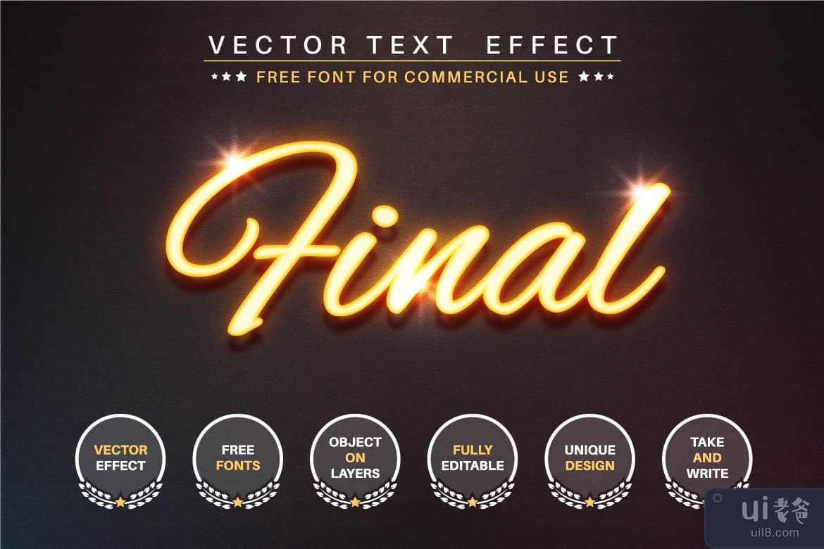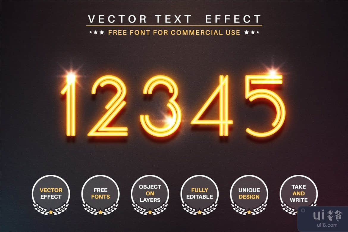 发光线 - 可编辑的文本效果、字体样式(Glowing wire - editable text effect, font style)