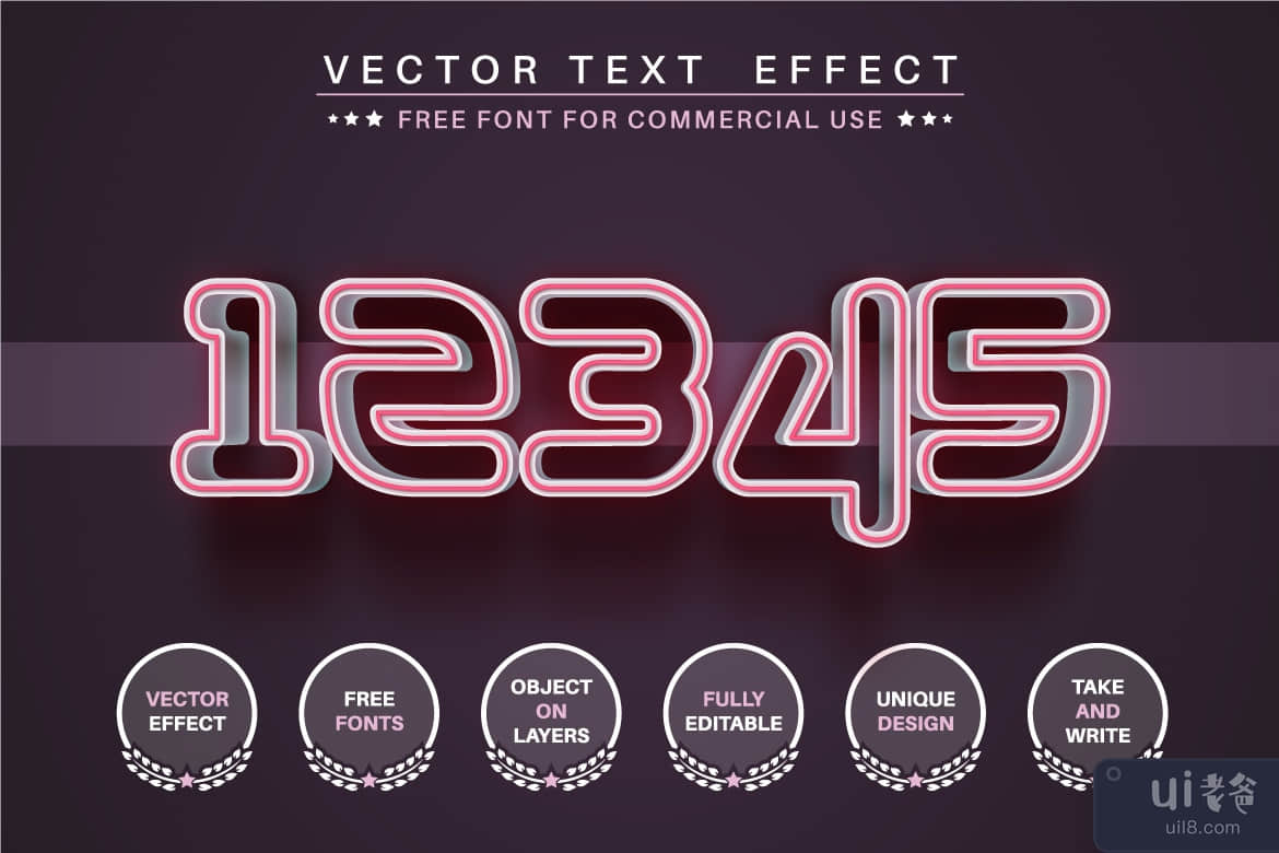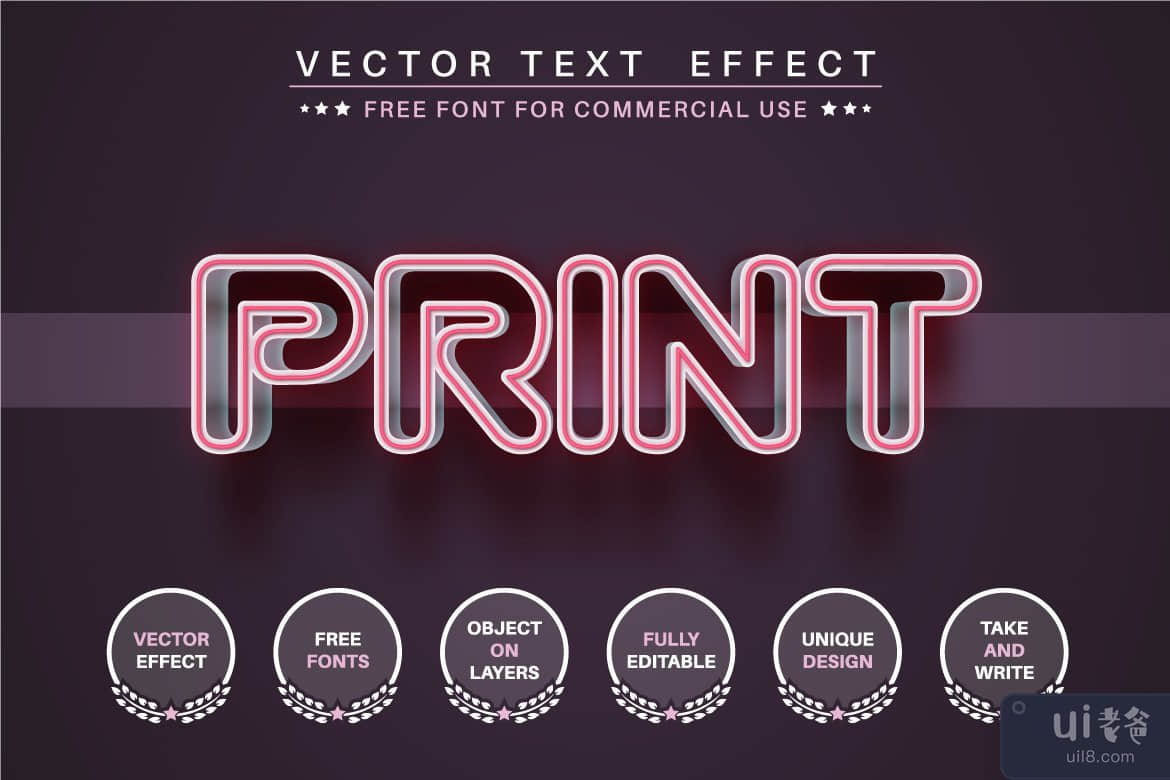 阅读 Manual_vector_text_effect.pdf 和 Manual_vector_effect_to_logo.pdf 以了解如何使用文本效果。