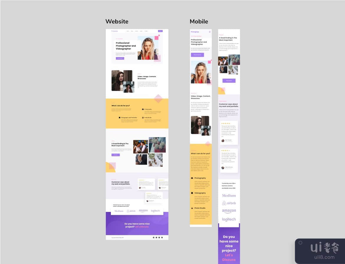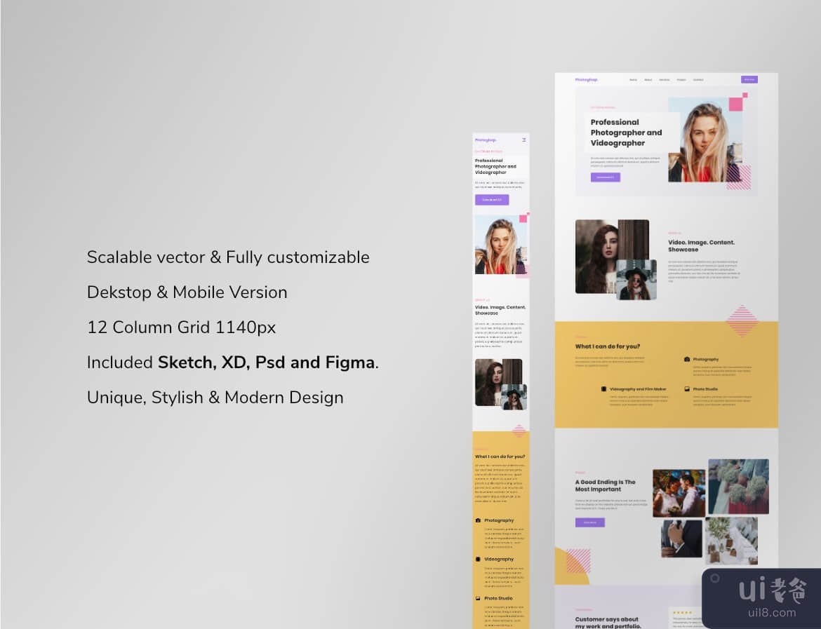 摄影个人网站模板是现代制作的网站模板,可用于您的个人或商业功能