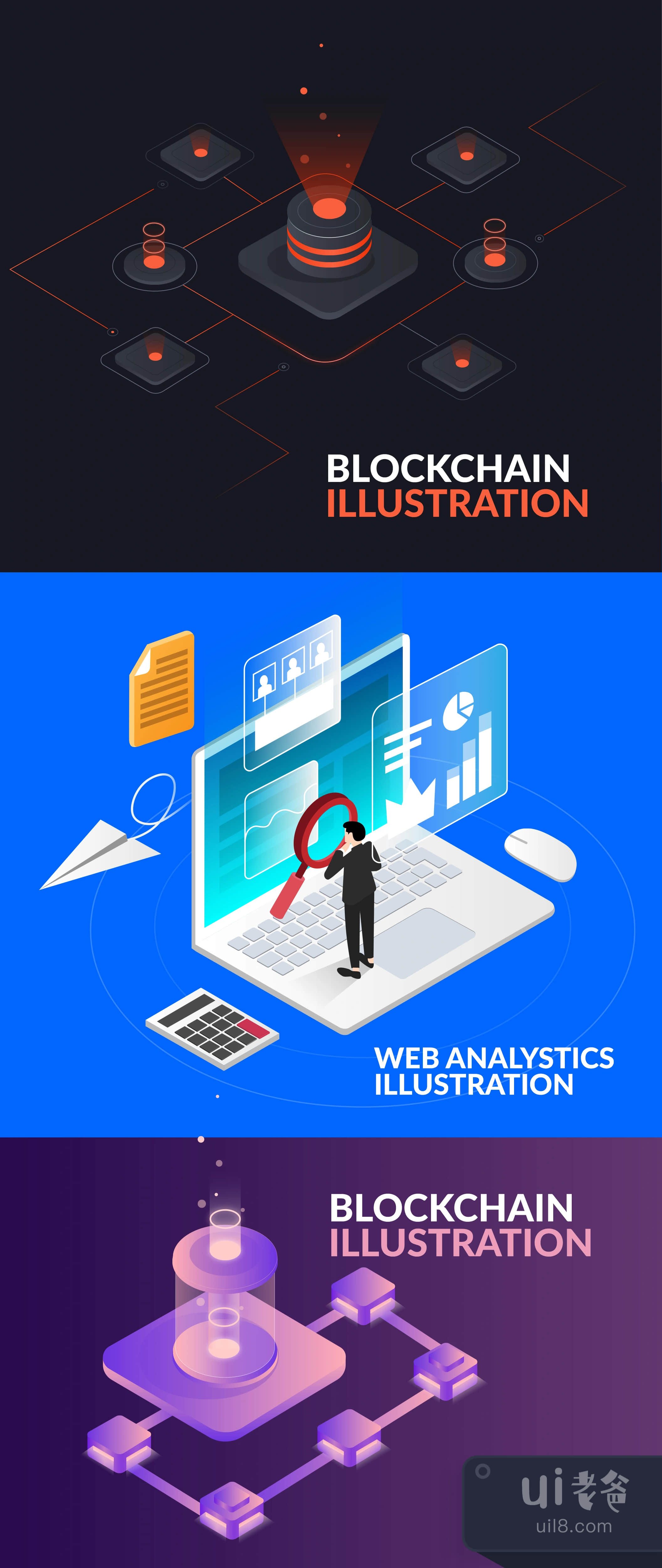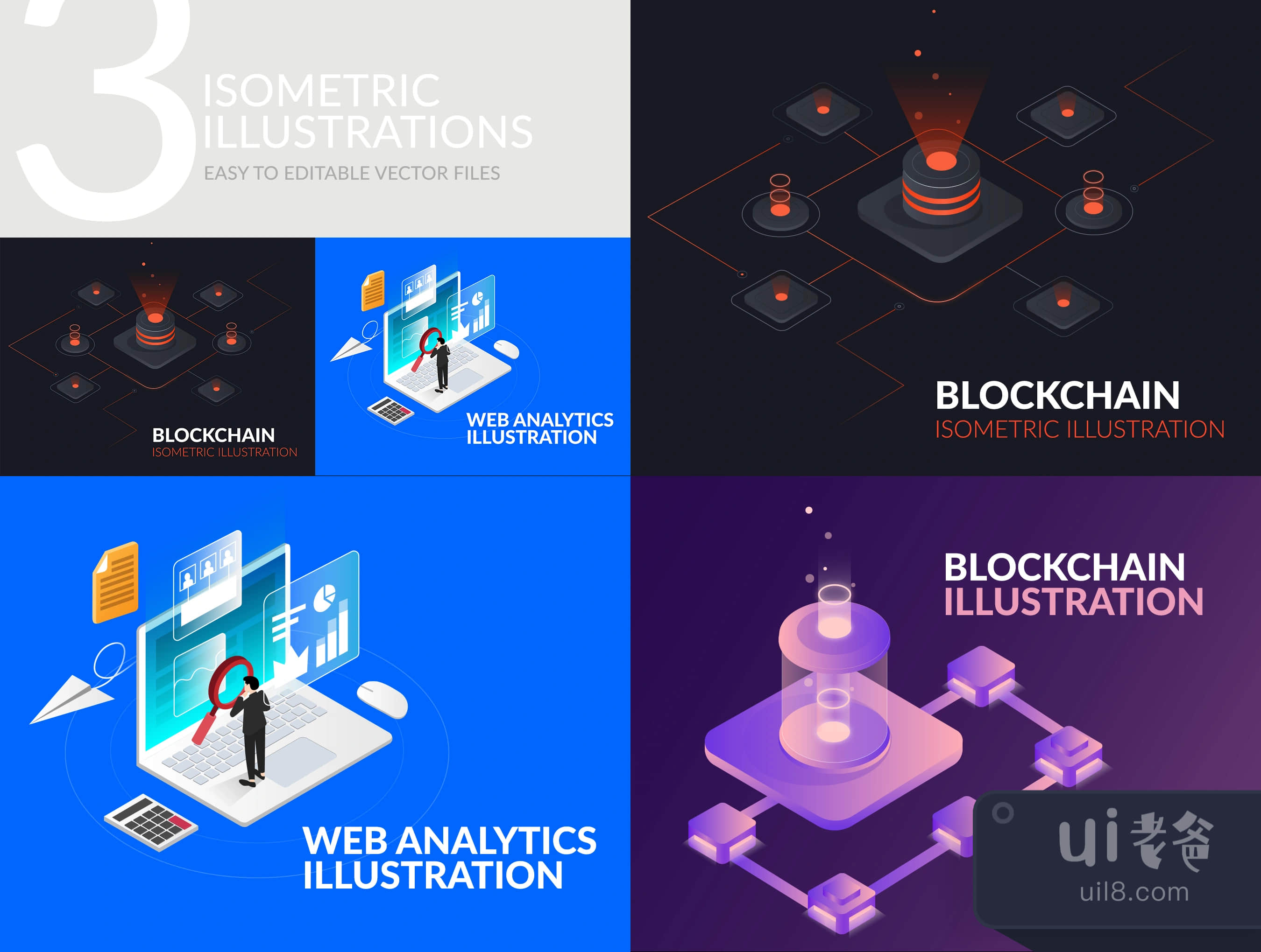 加密货币和网络分析的等距插图以不同的文件格式交付;AI, EPS, PNG