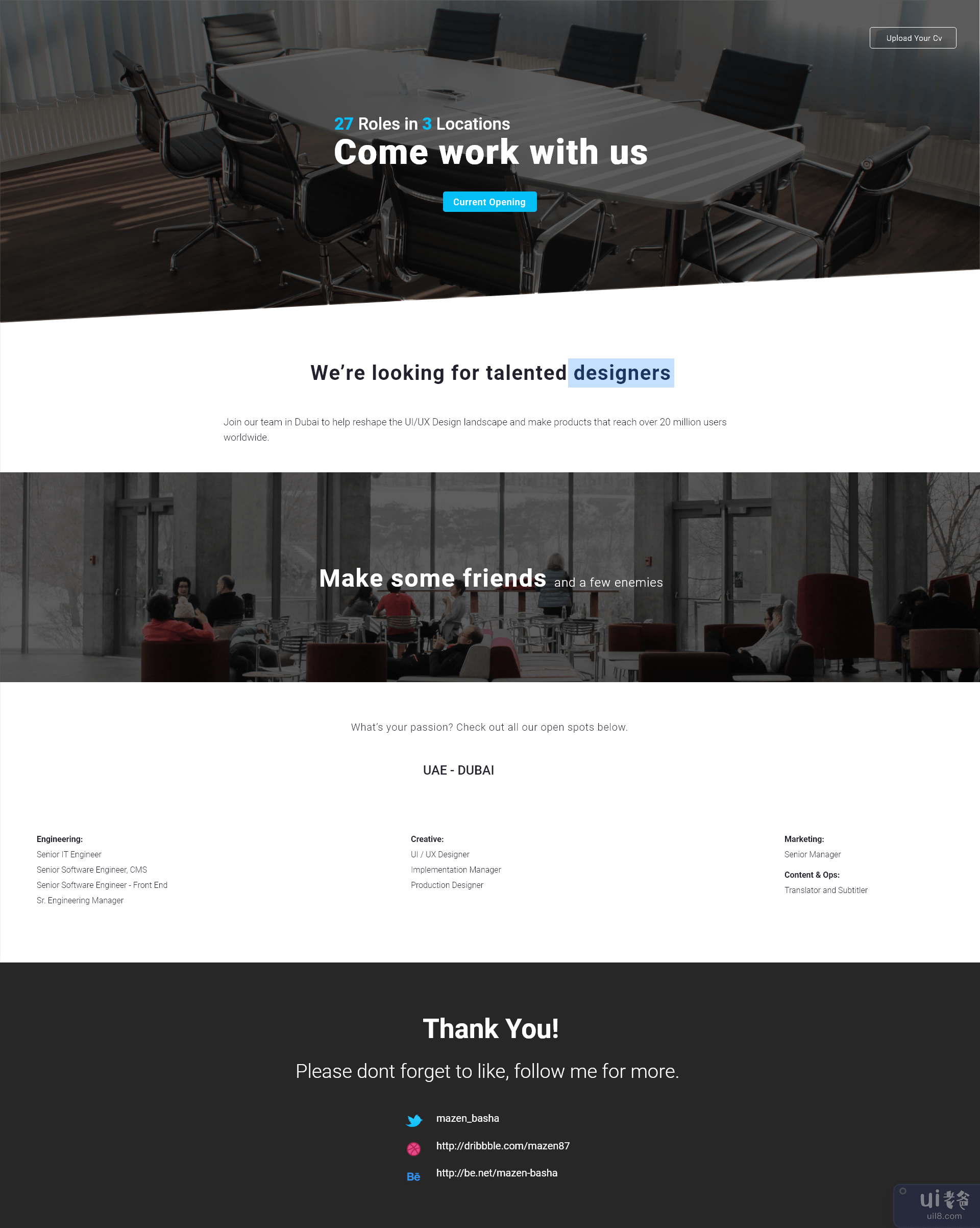 当前位置: 首页UI正文 职业页面设计(Careerpage Design) UI 3年前 0 1.9K 15 收藏 -中文- 职业页面设计用户界面 -英文- Careerpage Design UI 声明:本站所有文章,如无特殊说明或标注,均为本站原创发布。任何个人或组织,在未征得本站同意时,禁止复制、盗用、采集、发布本站内容到任何网站、书籍等各类媒体平台。如若本站内容侵犯了原著者的合法权益,可联系我们进行处理。aagearcarcare samstudio青铜用户 收藏 海报 链接