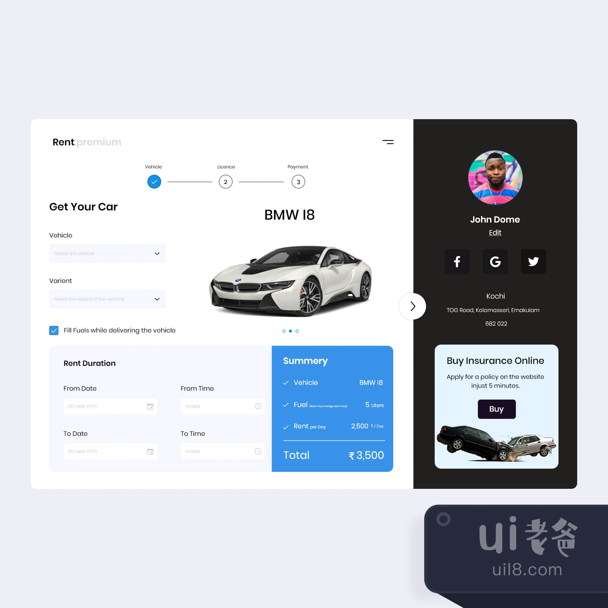 An Adobe XD website design for Renting Premium Cars & Insurence.