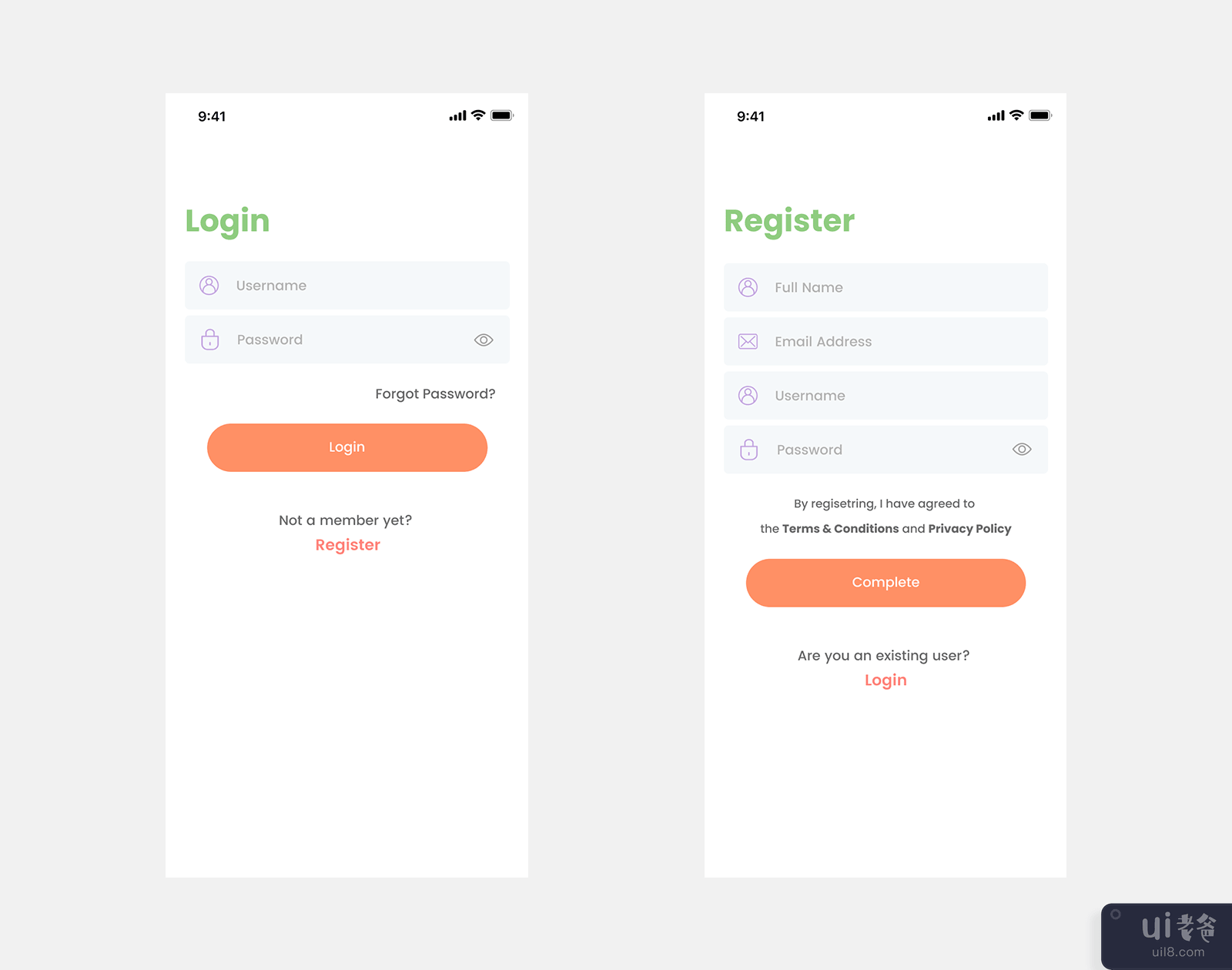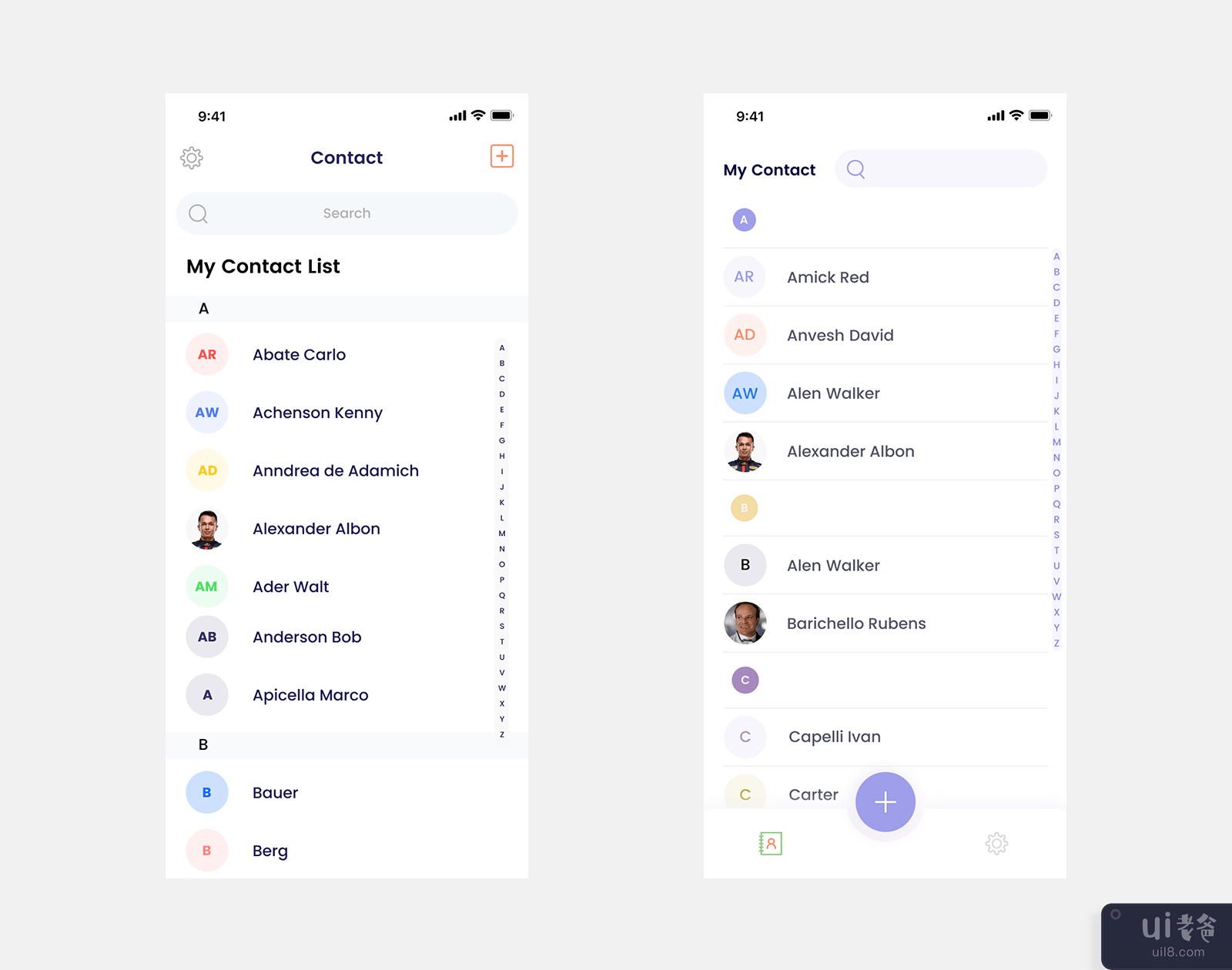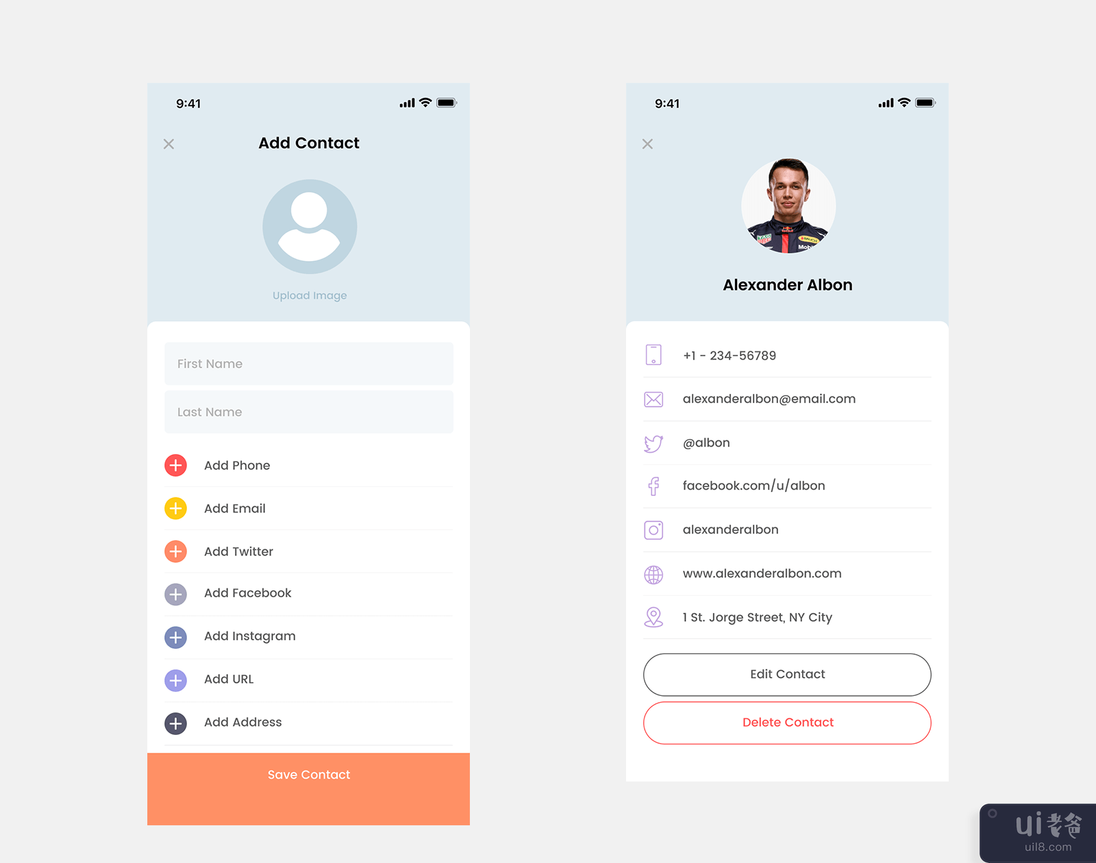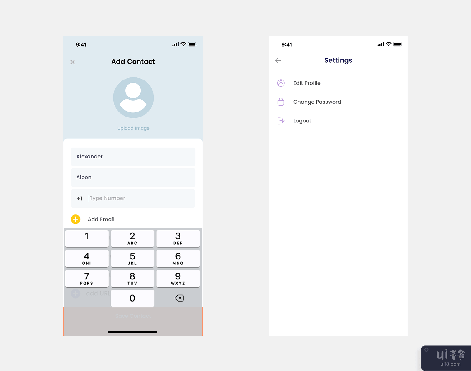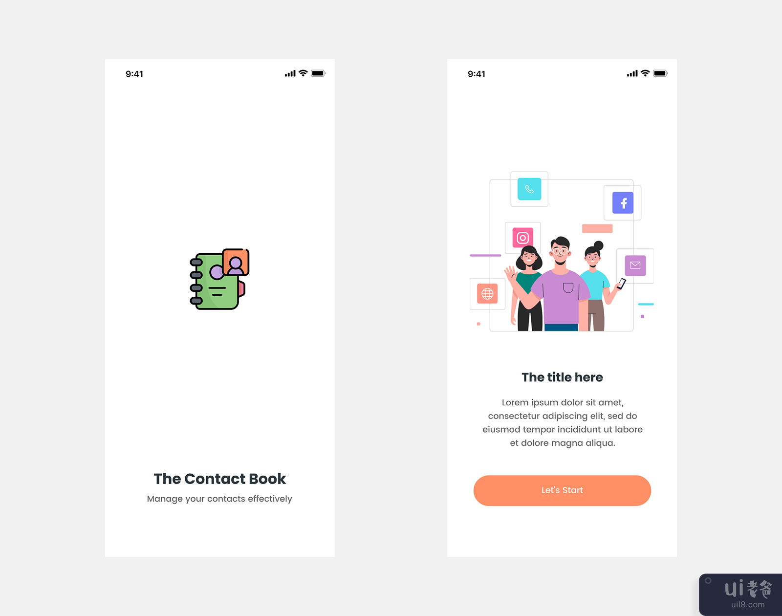 *启动屏幕*登录屏幕*注册屏幕*列表联系人屏幕*添加新联系人屏幕*联系人详细信息屏幕*编辑联系屏幕*退出屏幕