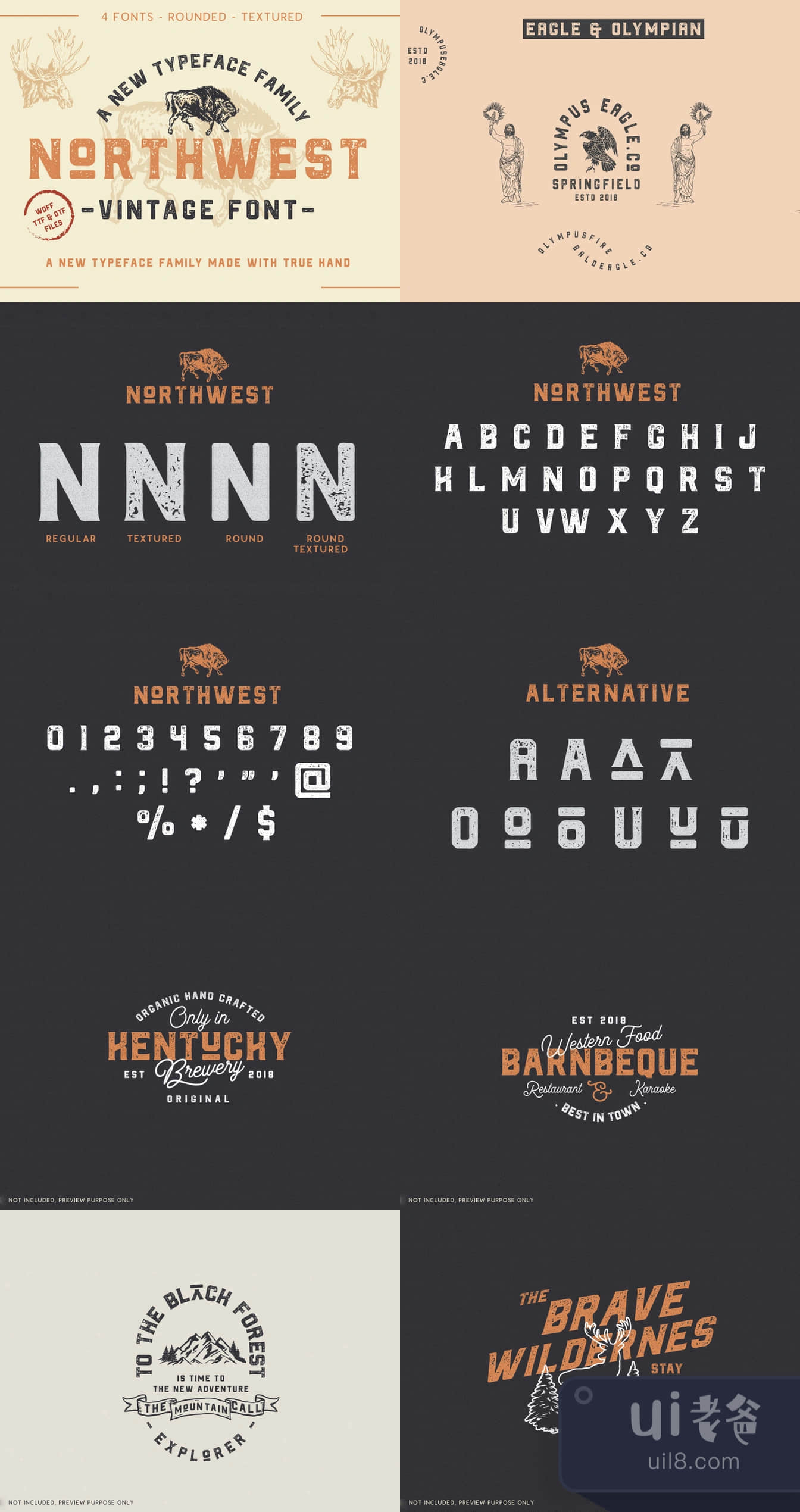 当前位置: 首页字体正文 西北复古字体系列 (Northwest Vintage Typeface Family) 字体 5年前 0 2.7K 10 收藏 声明:本站所有文章,如无特殊说明或标注,均为本站原创发布。任何个人或组织,在未征得本站同意时,禁止复制、盗用、采集、发布本站内容到任何网站、书籍等各类媒体平台。如若本站内容侵犯了原著者的合法权益,可联系我们进行处理。font花式体 Novelty Fonts PSDZone青铜用户 收藏 海报 链接
