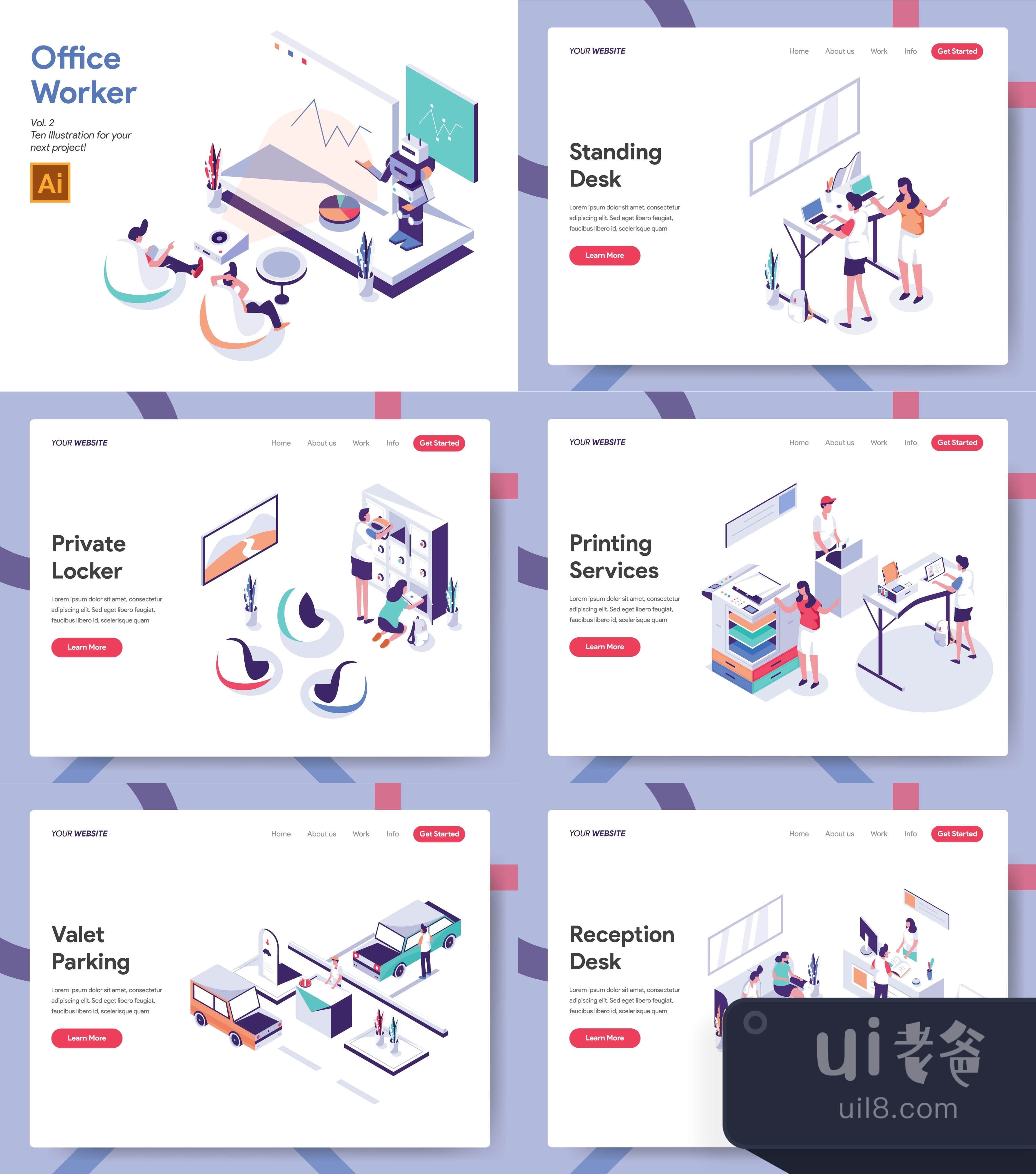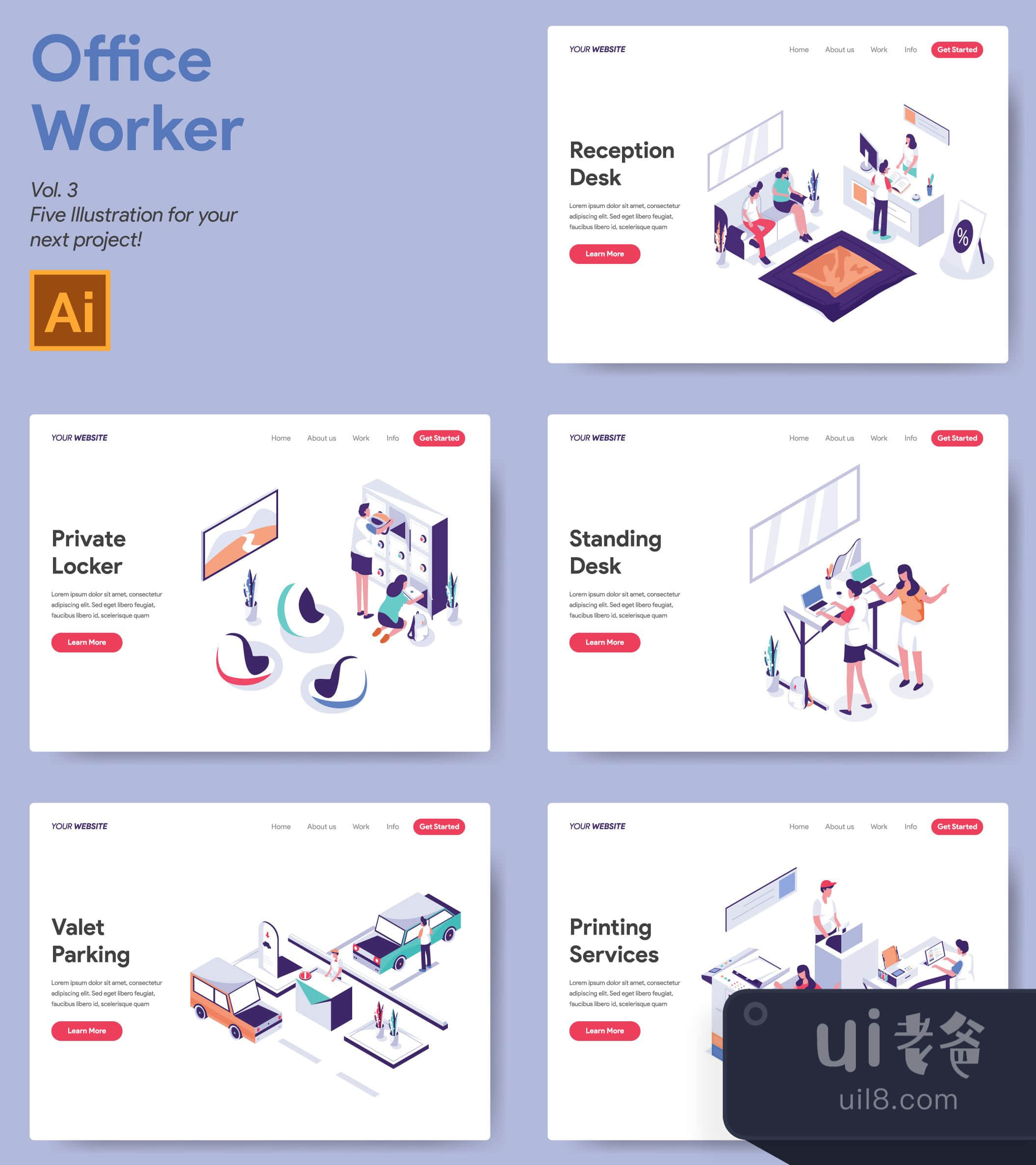 5 Illustration for Office Worker Illustration Concept in vector EPS 10 file. Suitable for website pages, click preview button to view all 5 illustrations. Like, comment and follow to see more updates from us!
