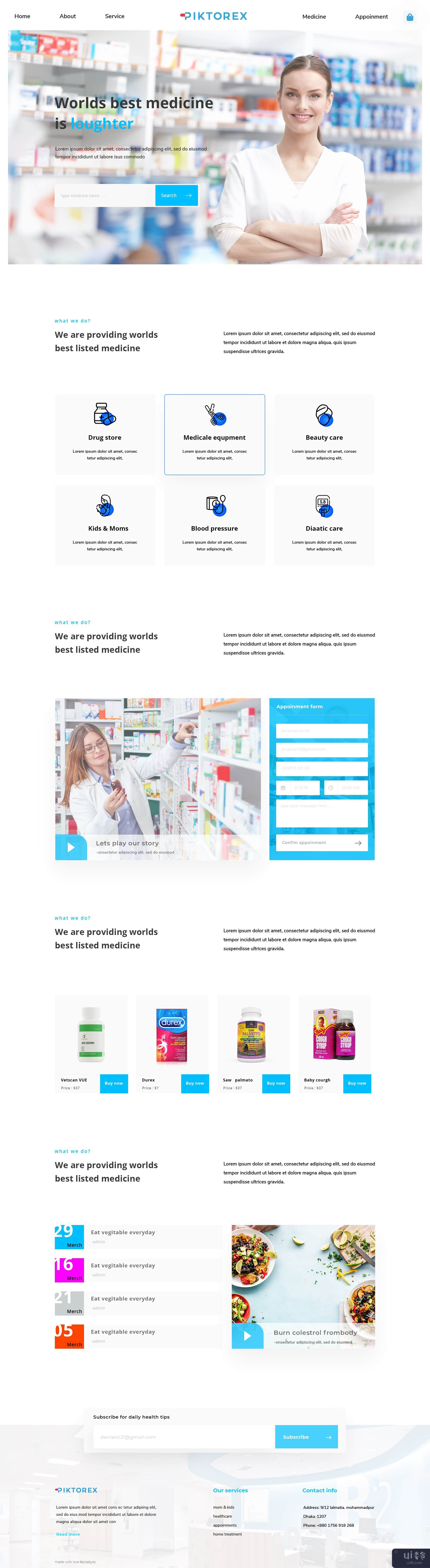 Medicine Shop web site Landing page design is simple and clean template to maximize best readability. It is fully customization & easy to use.