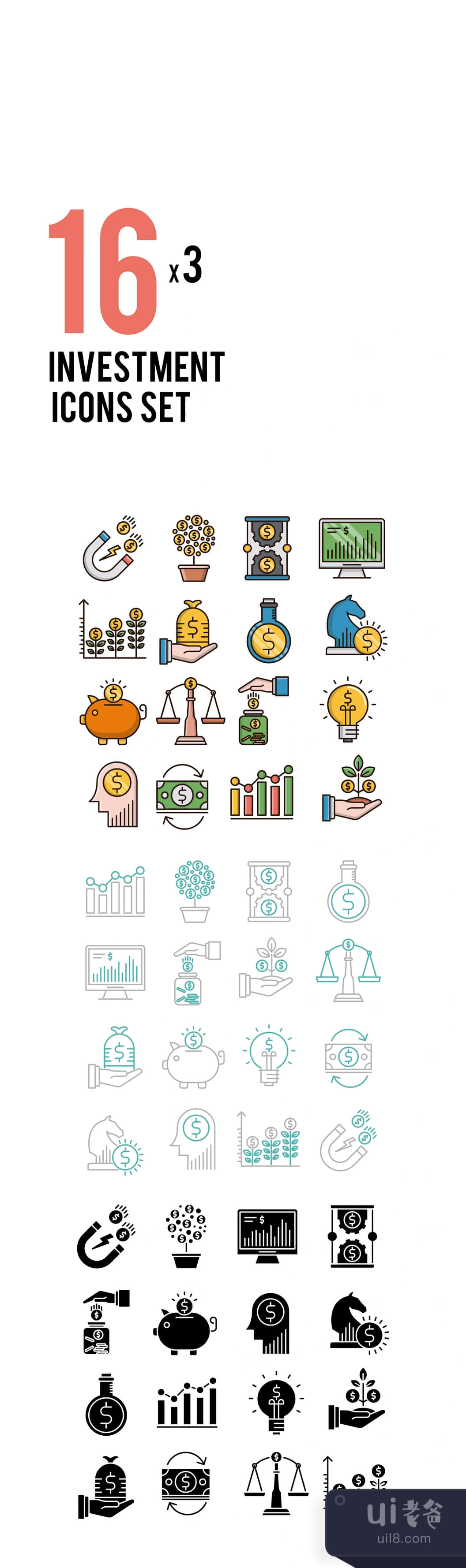 16个投资图标 (16 Investment Icons)