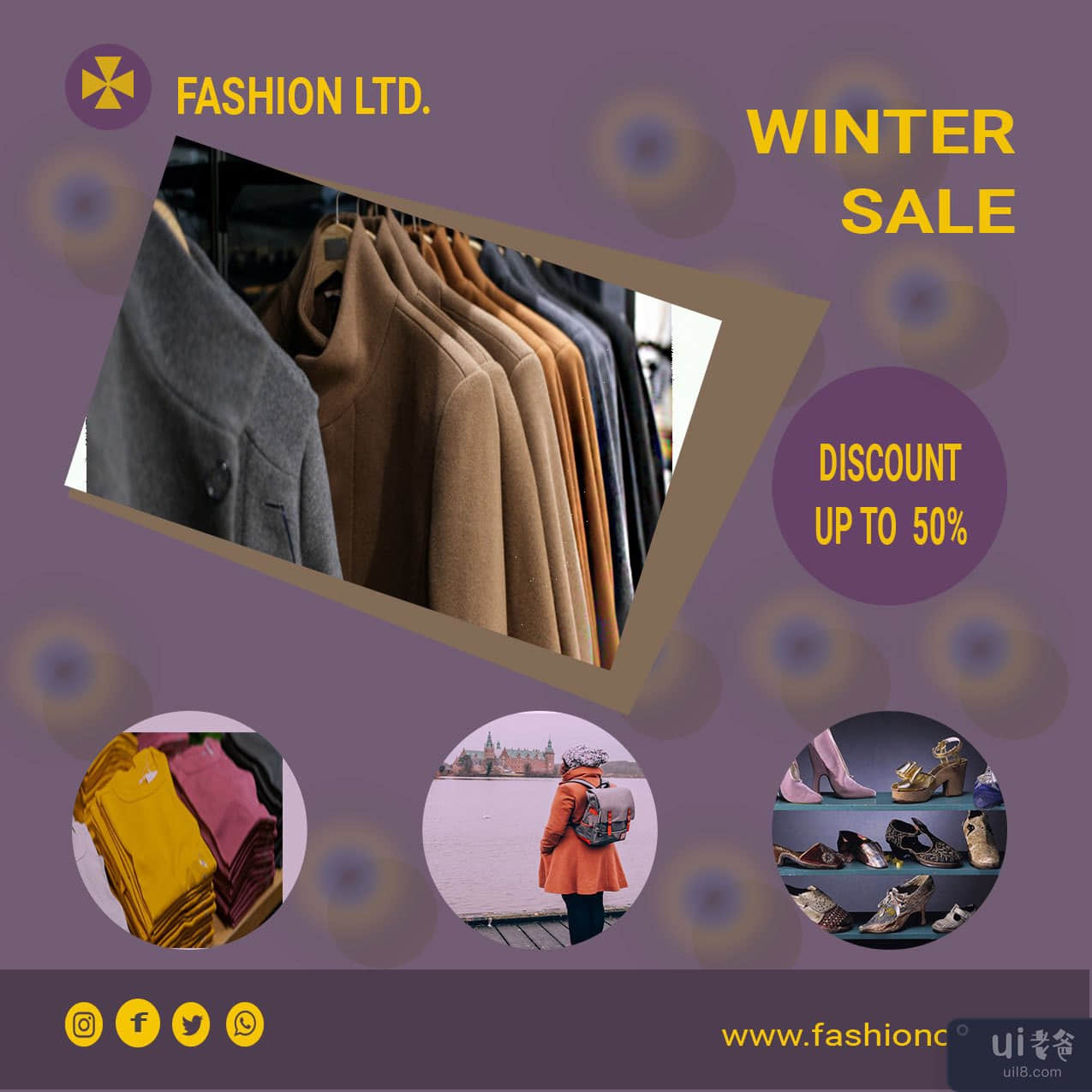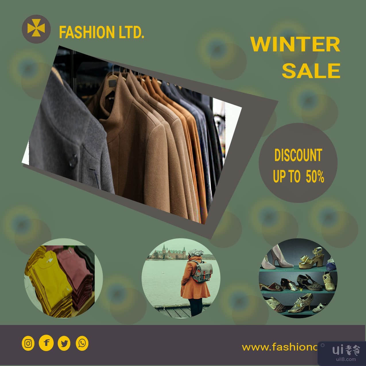 新的冬季销售社交媒体帖子横幅模板(New winter sale Social Media Post Banner Template)