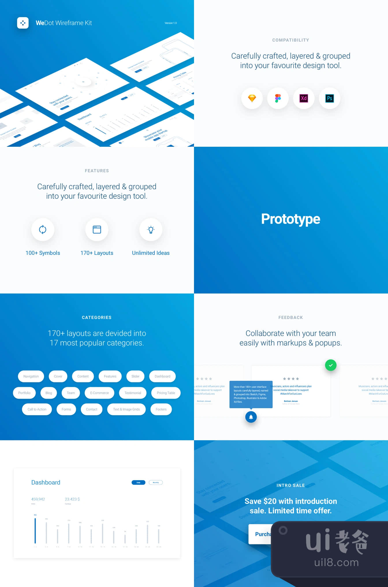 WeDot线框UI套件 (WeDot Wireframe UI Kit)