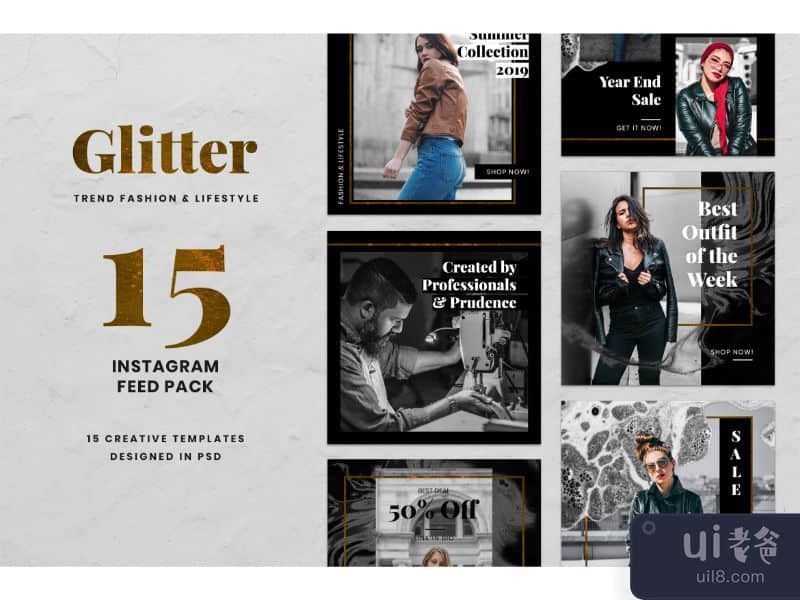 欢迎来到 Instagram 的专业、干净、现代和优雅的帖子!一组灵感板、肖像板、购物爱好者等等!为您的促销提供惊人的帖子!此产品包含 15 个超级容易编辑的 Instagram 帖子 。每个故事都是专业设计的:它们完全可定制并与 Adobe Photoshop 兼容。借助这些 Instagram 快拍,您可以以时尚和专业的方式轻松升级您的 Instagram!产品包括