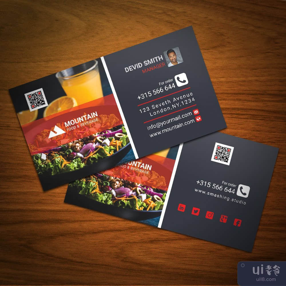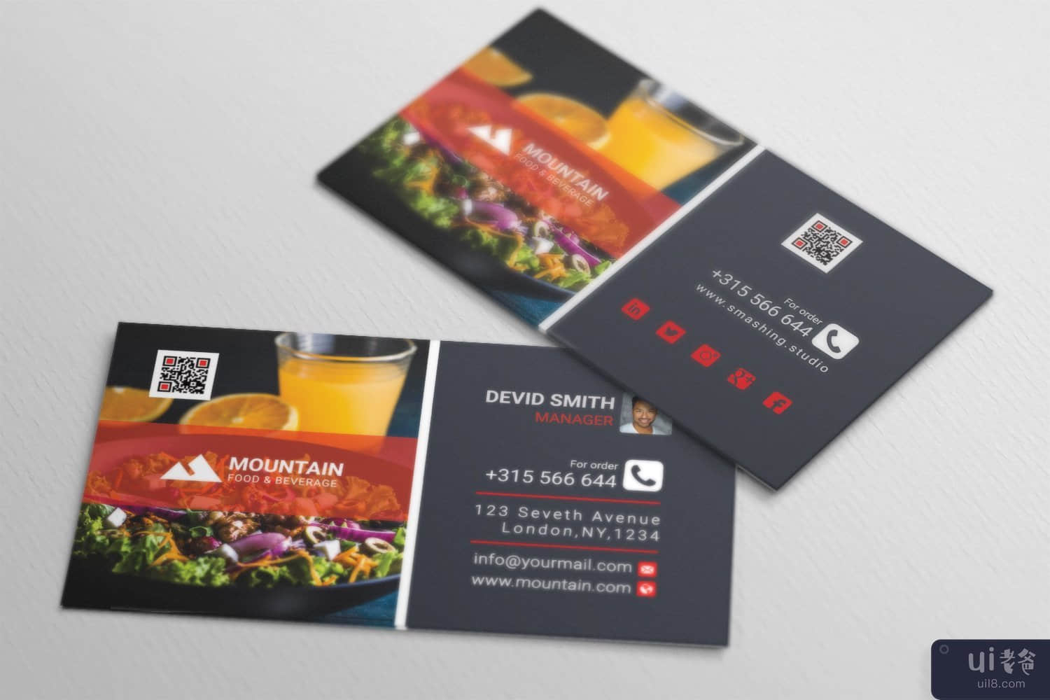 餐厅预订和订购名片模板(Restaurant Booking and order Business Card Template)
