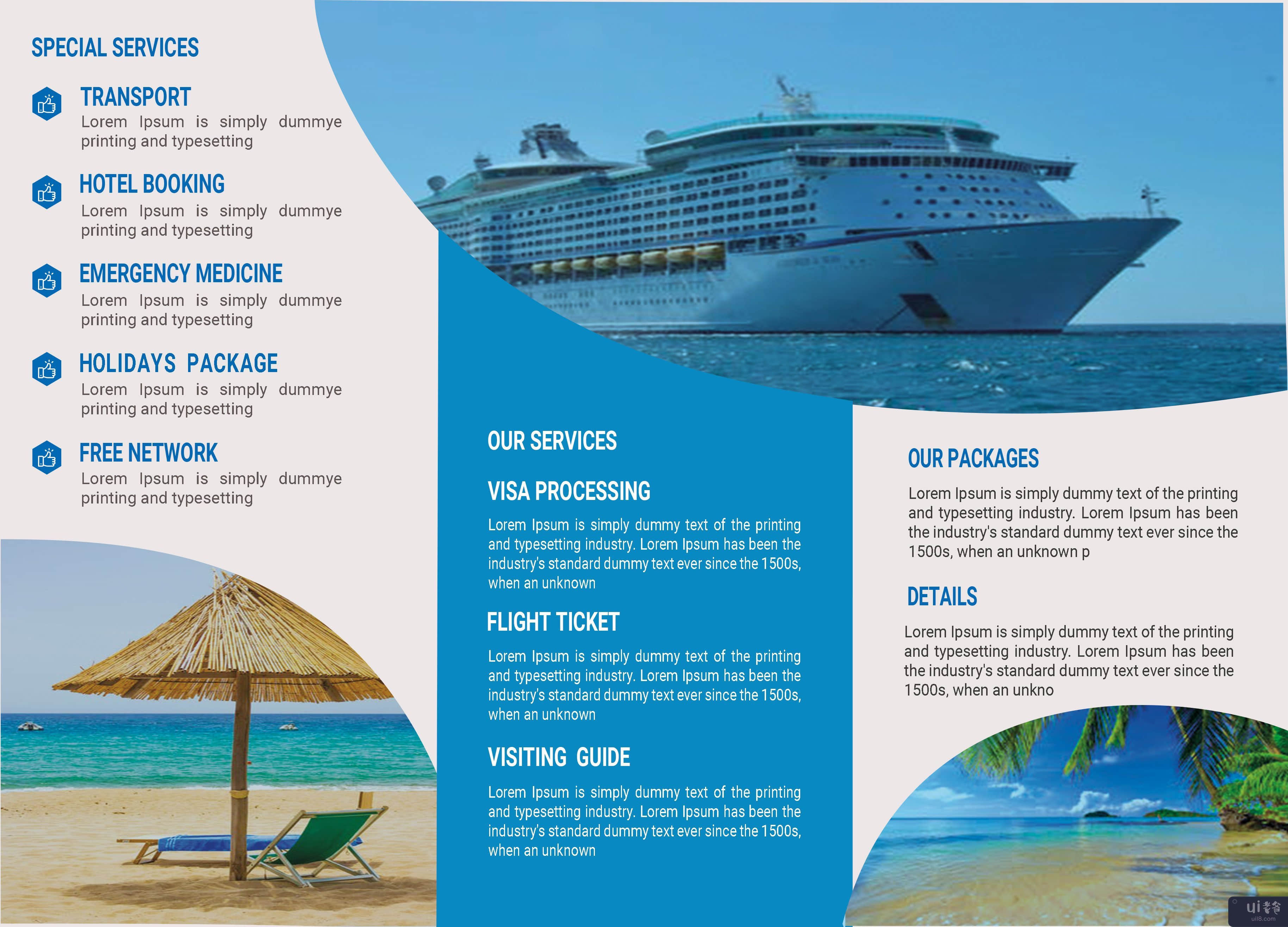 这是一个旅行手册模板。它可以用于任何商业目的。该文件包含一个分辨率为 300 dpi 且具有 CMYK 颜色模式的 psd 文件。源文件中不包含图像。使用免费字体。所有文本,元素都是完整的&易于编辑。psd 文件是分层的 &按专有名称组织的组。