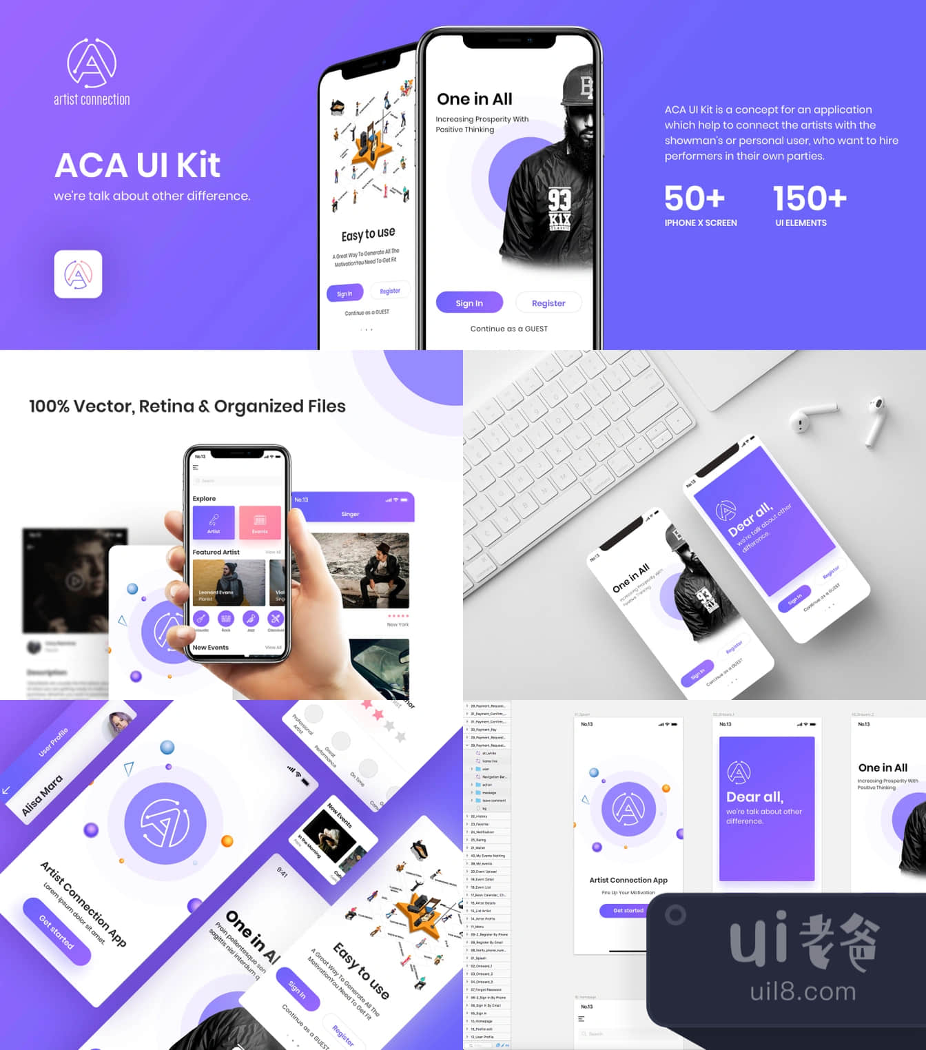 ACA UI Kit是一个应用程序的概念,它有助于连接艺术家和表演者或个人用户,他们想在自己的派对上雇用表演者。该套件被设计成简单而引人注目的iPhone X,包括50多个用Sketch制作的iOS屏幕模板。ACA是在强大和易于使用的基础上创建的,可以为你自己的项目提供灵感。