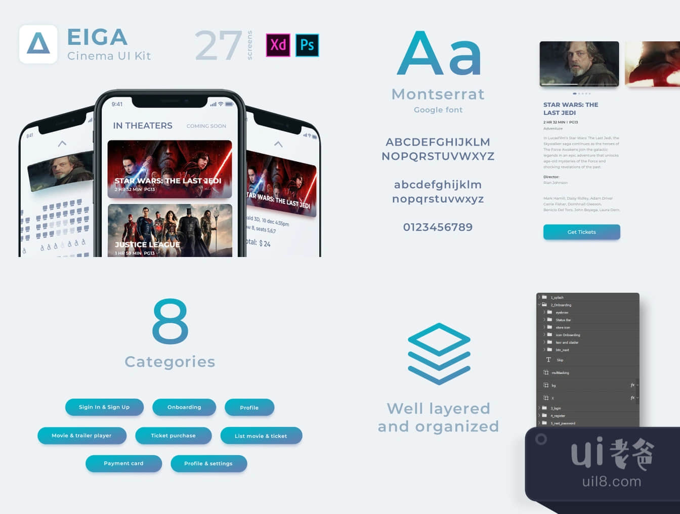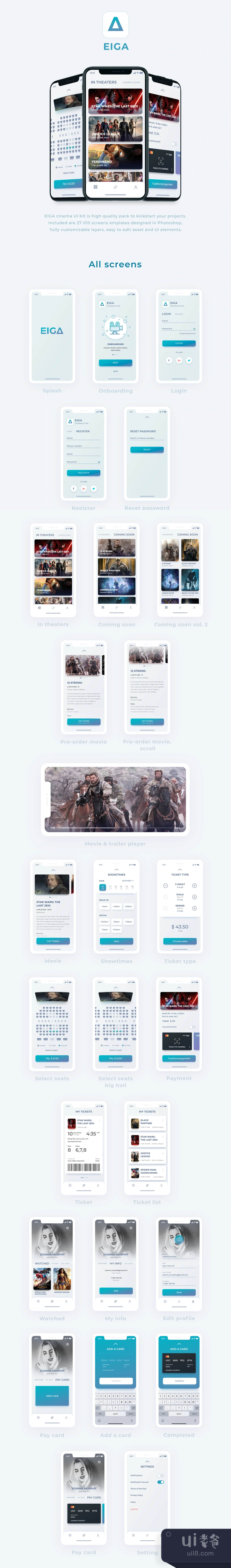 EIGA电影院UI KIt是高质量的包,可以启动你的项目。