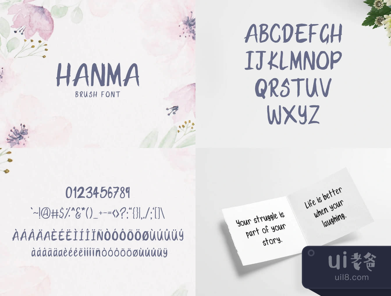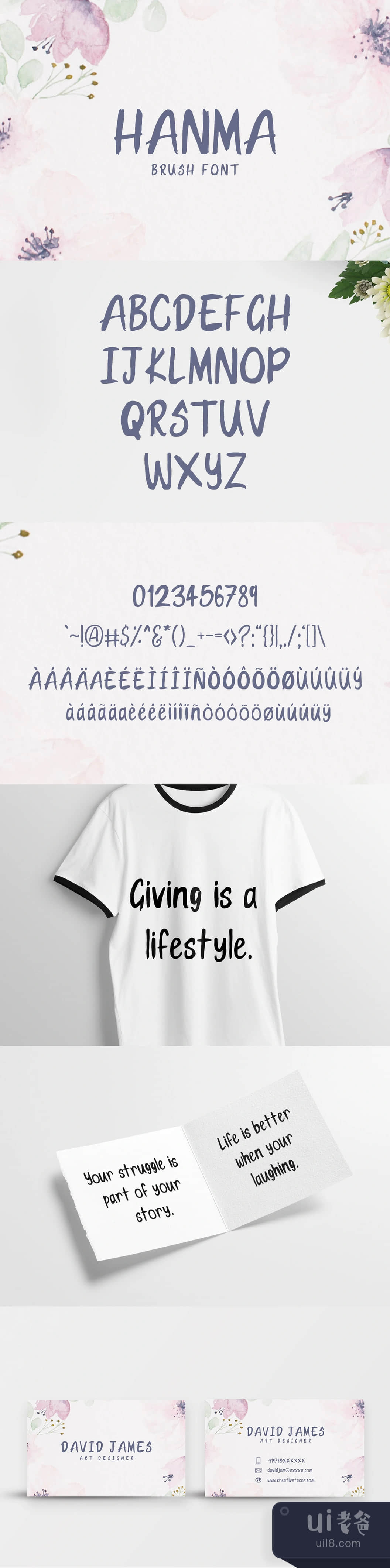 Hanma是一个你一直在寻找的时尚的当代刷子字体,它独特的流程和风格使它完美地用于印刷品、标志、报价、徽章、标签、包装设计、博客、网站、设计、标题、横幅、海报、打印、T恤、杂志、促销产品、模板等。