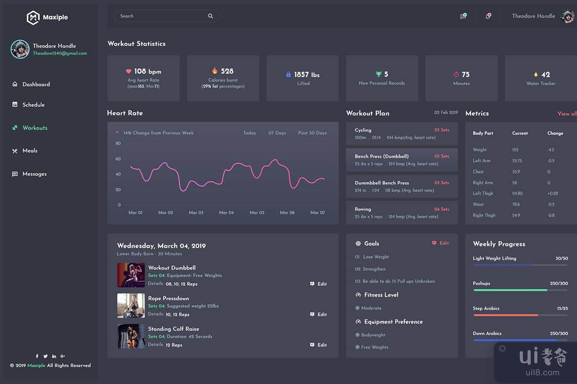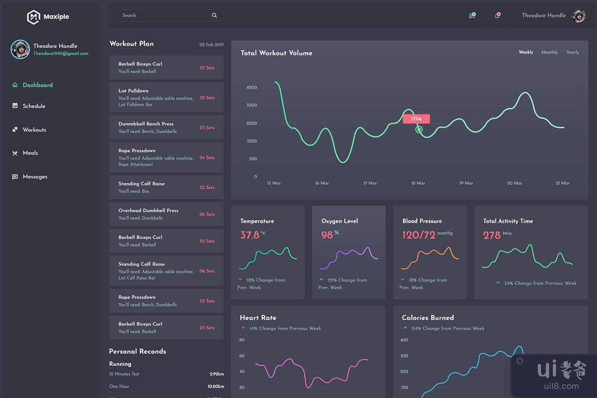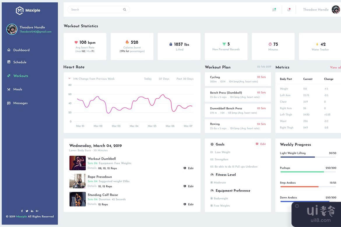 Maxiple - 健身管理仪表板 UI 套件(Maxiple - Fitness Admin Dashboard UI Kit)