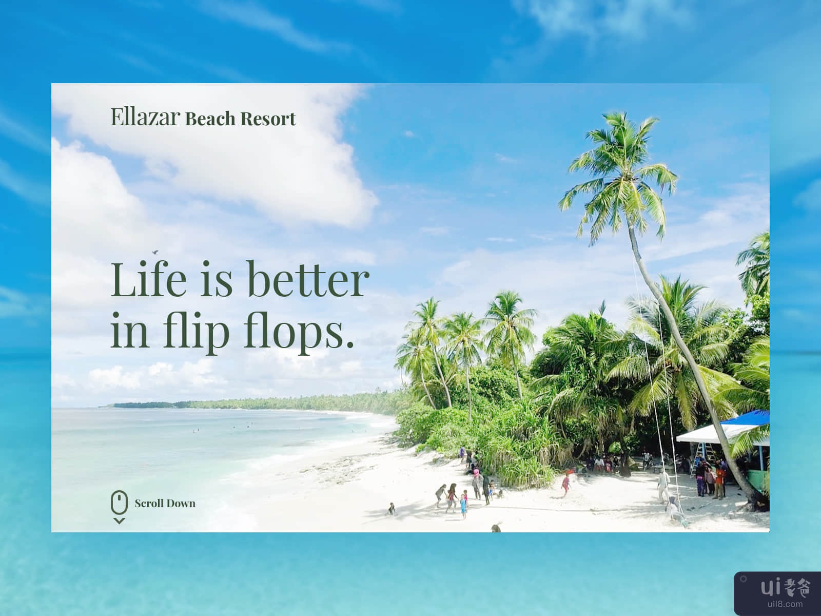 埃拉扎尔的登陆页面。等距海滩度假村网站。因为我不知何故忘记在办公室做,所以在家里用 Photoshop 重新制作。哈哈随意按“L”留下一个赞。你怎么看? :) #Everydays049