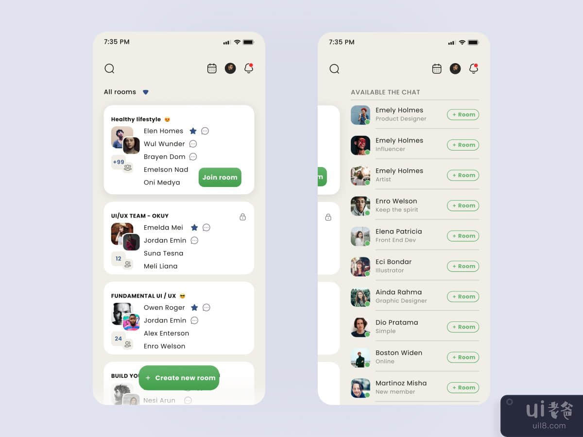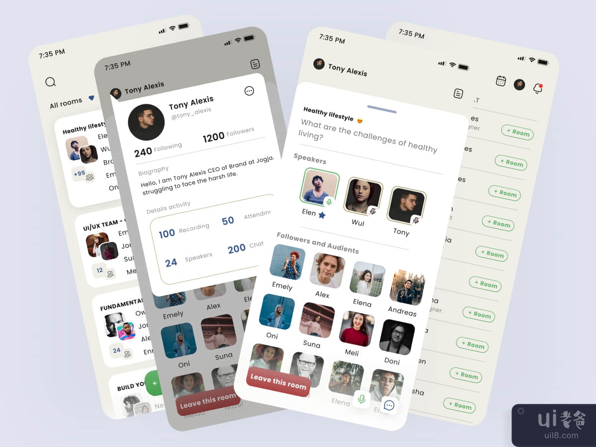 Hi guys 👋Today I made a design challenge about Clubhouse Redesign App. There are 4 screens consisting of screen Home, Available Chat, Room Meeting, and My Profile.Icons of: https://www.instagram.com/piqodesign/What do you think about this design? I hope you enjoy this design and don't forget to press "Upvote" if you like it. Do not forget to comment and to like. Give us your valuable feedback, which really does mean.😉Stay tuned for further shots.