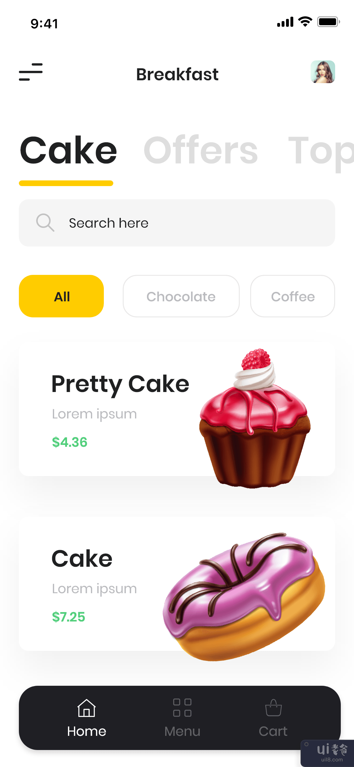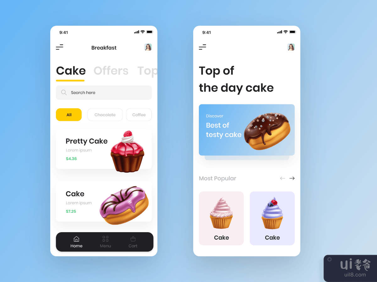 请检查它非常有创意我的蛋糕店应用程序设计示例