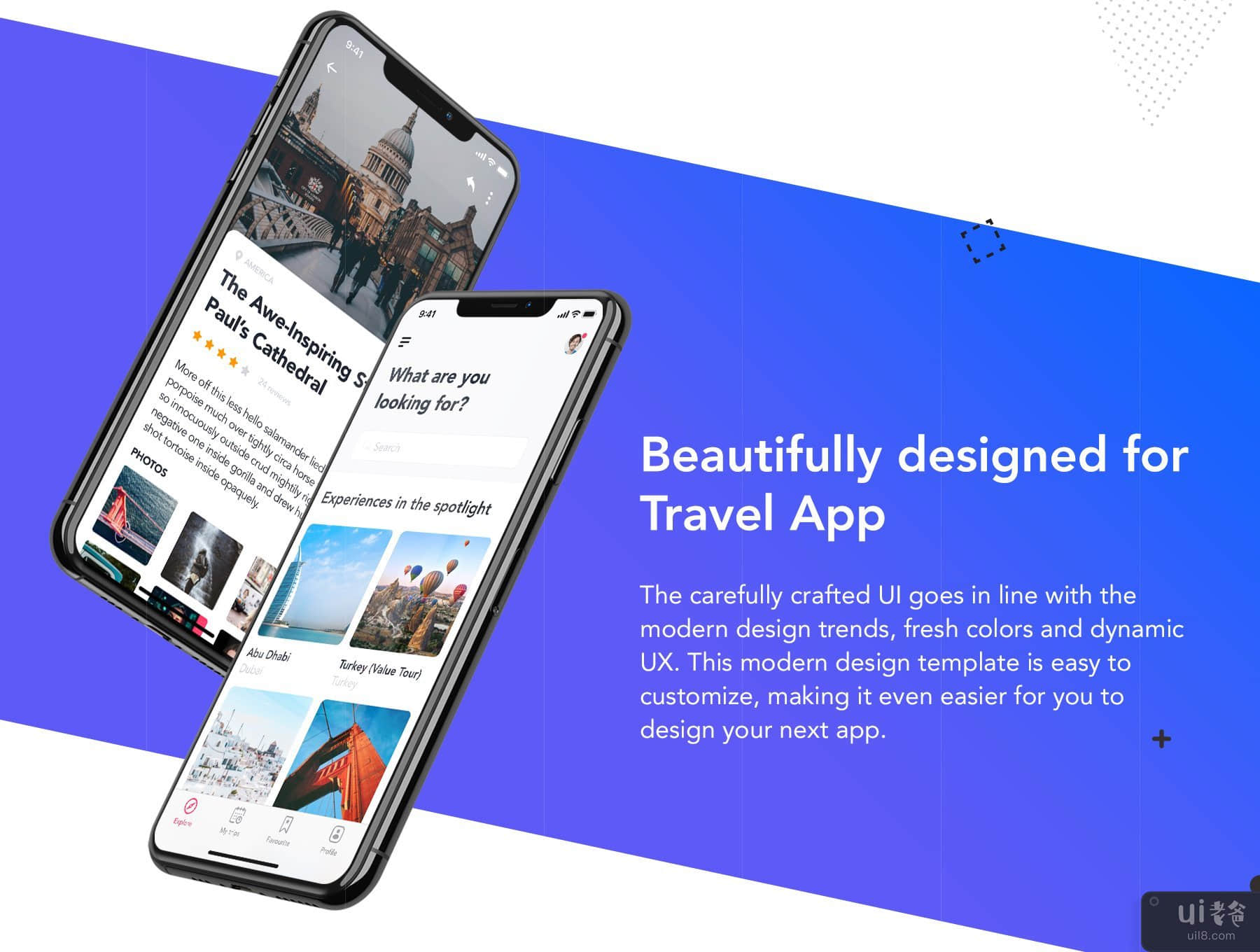 EasyGo - Travel App UI Kit is a high-quality pack of 30+ screens designed to kickstart your travel projects and accelerate your design workflow. This kit is 100% compatible with iOS & Android systems. The carefully crafted UI goes in line with the modern design trends, fresh colors and dynamic UX. This modern design template is easy to customize, making it even easier for you to design your next app.