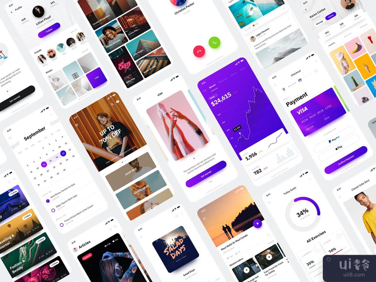 Xiao iOS UI Kit - 260 多个屏幕,有 10 个类别的浅色/深色变体(Xiao iOS UI Kit - 260+ Screens with 10 Categories in Light/Dark Variants)