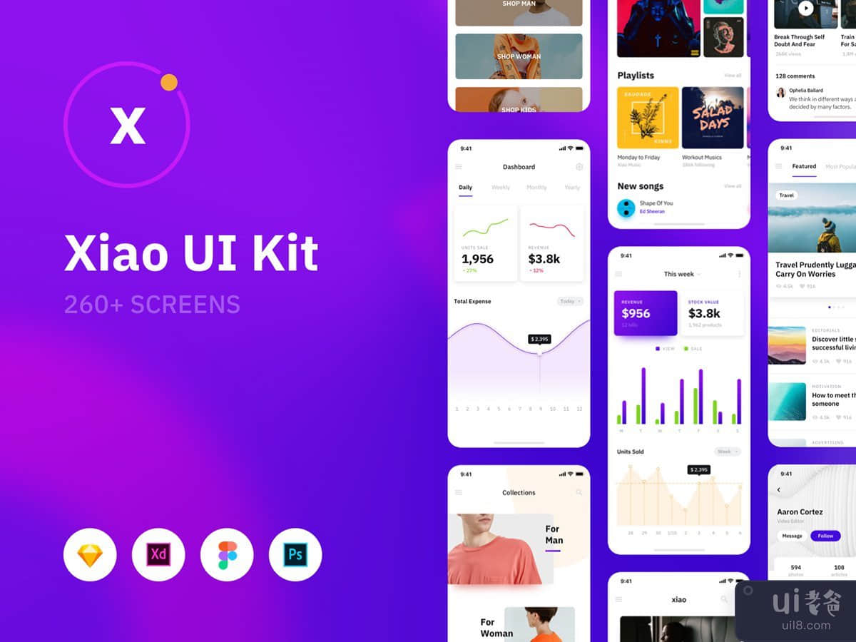 Xiao UI Kit contains 260+ Prebuilt iOS Light & Dark Screens in 10 Categories (Walkthrough, Signup & Login, Profile, Feeds, Articles, Social, Navigation, Ecommerce, Media, Dashboard) Designed by Sketch, Adobe XD, Figma and Photoshop.Xiao UI Kit is neatly grouped, named and organized accordingly so its very easy to change any and all of the design.Xiao UI Kit is a beautiful, unique and trendy Mobile UI Kit. It will help you save tons of time building your products.