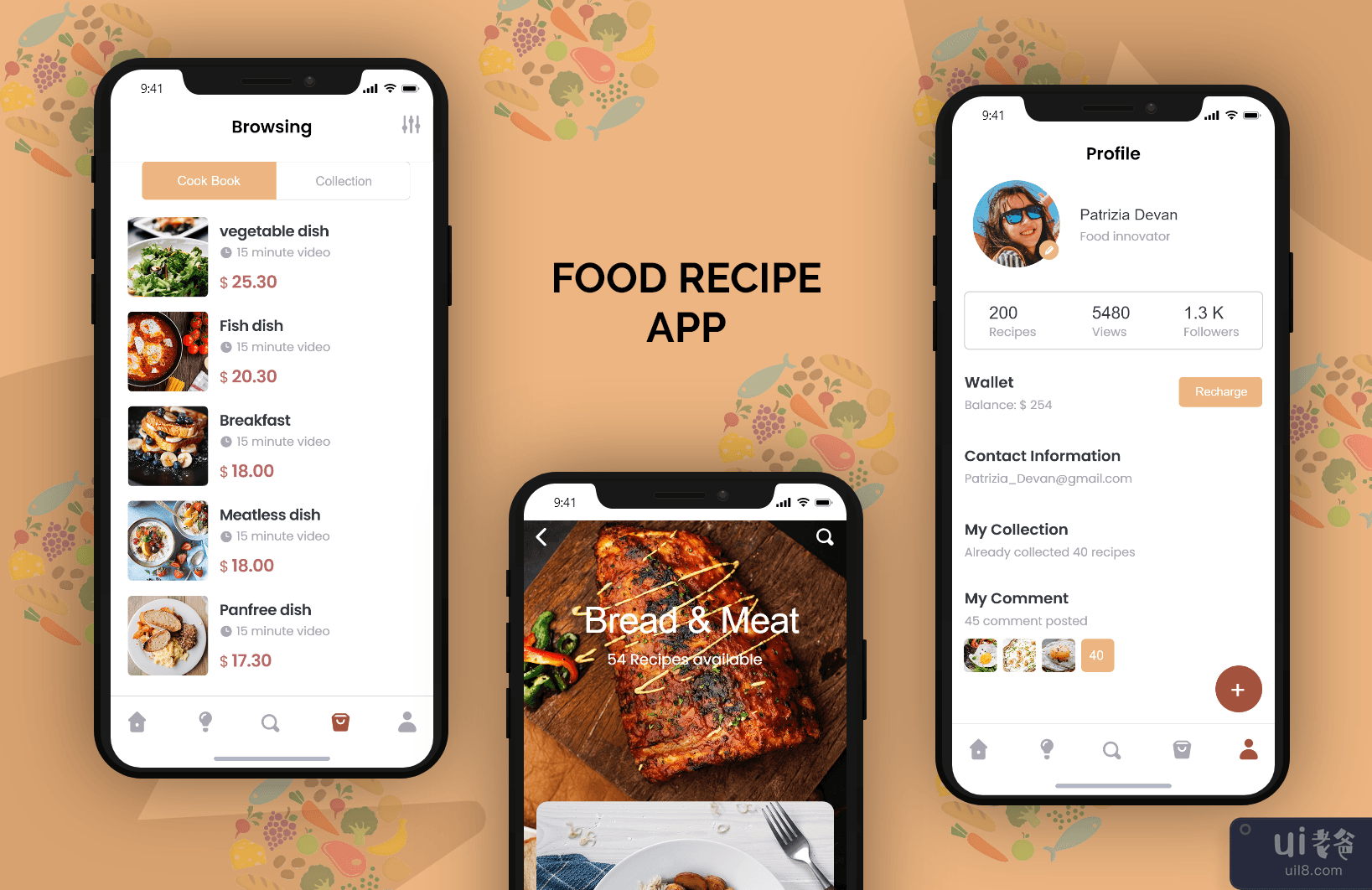 下载食物食谱应用程序 UI 套件。此移动应用程序 UI 套件设计专为您的餐厅或食品相关应用程序而设计。此食品食谱应用程序 UI 套件具有创建此类移动应用程序所需的所有应用程序屏幕。您还可以轻松自定义和修改此移动应用程序 UI 套件以满足您的需求。您还可以将此 Food Recipe App UI Kit 用作灵感学习的目的,或者您可以在未来的应用程序设计项目中使用它。 Food Recipe Mobile App 提供 Photoshop PSD 文件格式和 XD 文件格式。此外,所有 PSD 元素都按层组织,允许您快速编辑。希望你喜欢这个食物食谱应用程序 UI 套件。享受吧!一如既往的快乐设计!