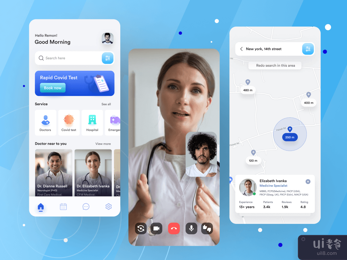 这是我对 Healthcare app 2022 的探索。 💪它将帮助您与医生联系、预约、寻找附近的医院、covid 测试、紧急帮助以及更多。请分享您对设计的宝贵意见。谢谢。快乐设计。 ✌️😃💌 将您的业务发送至: audinkundu@gmail.com