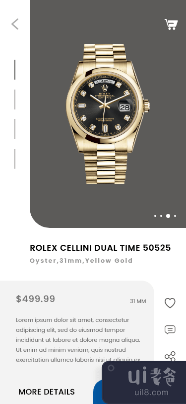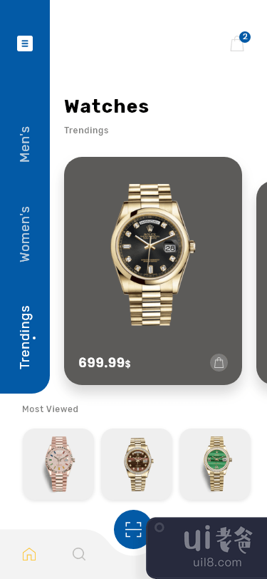 当前位置: 首页UI正文 劳力士手表应用程序用户界面(Rolex Watch App UI) UI 3年前 0 6.3K 19 收藏 -中文- 无效的 -英文- null 声明:本站所有文章,如无特殊说明或标注,均为本站原创发布。任何个人或组织,在未征得本站同意时,禁止复制、盗用、采集、发布本站内容到任何网站、书籍等各类媒体平台。如若本站内容侵犯了原著者的合法权益,可联系我们进行处理。approlexui劳力士手表 KendraL青铜用户 收藏 海报 链接