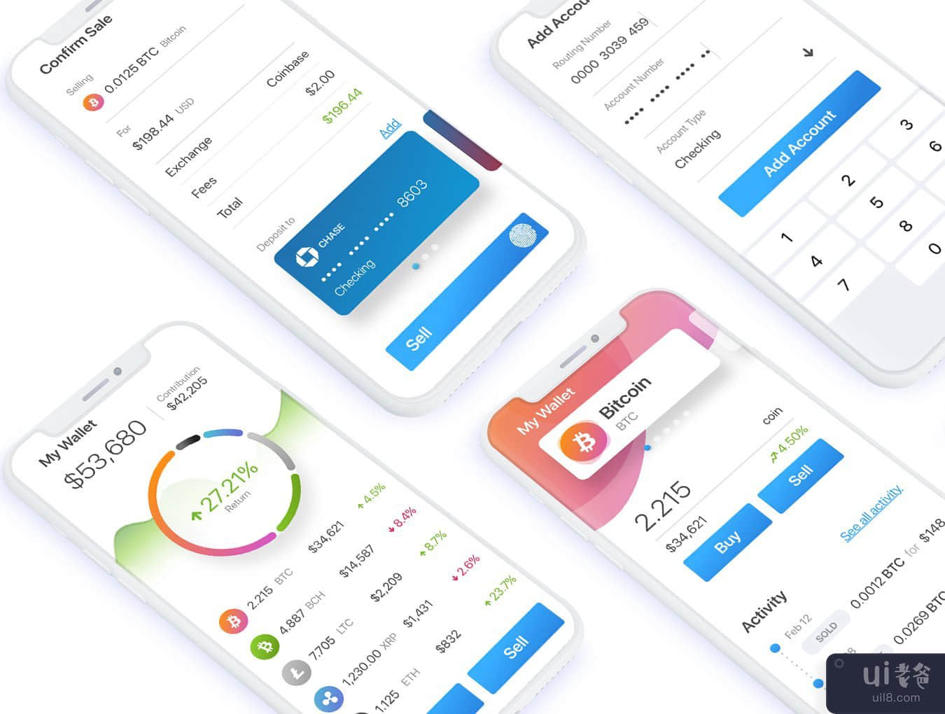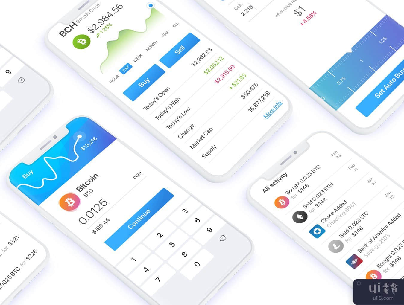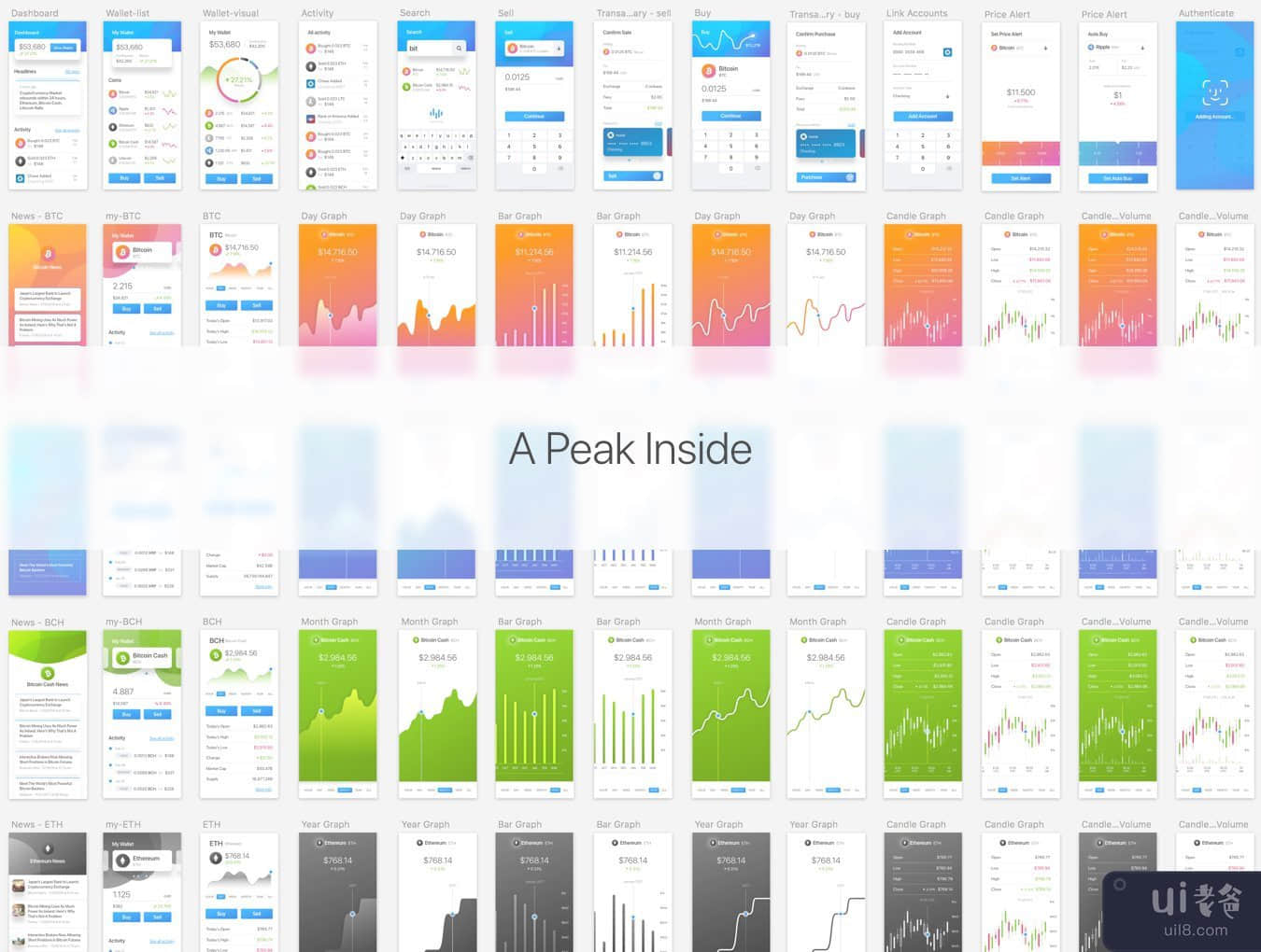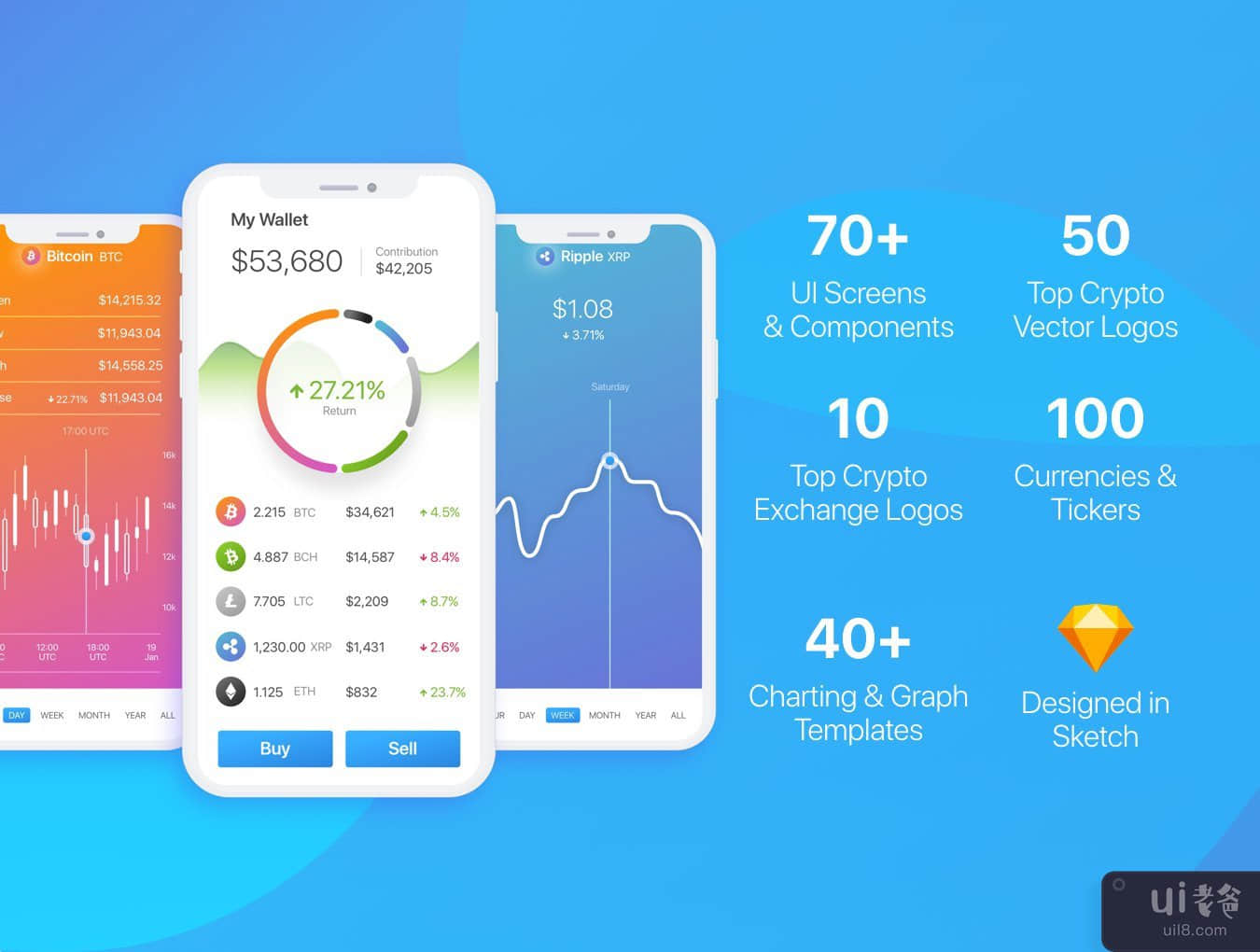 CryptoKit Cryptocurrency 对于任何希望创建自己的加密货币、交易所、应用程序或网站。设计于 Sketch 适用于 iOS 和 iPhone X(但不限于),此 UI 套件包含您编写加密货币所需的一切 交易屏幕,  ;市场定价屏幕,以及各种 新闻 和 钱包 屏幕。每个屏幕都有 100% 矢量 有很好的 有组织的图层。提取和自定义 100 多个组件 快速轻松地创建您自己的加密货币。