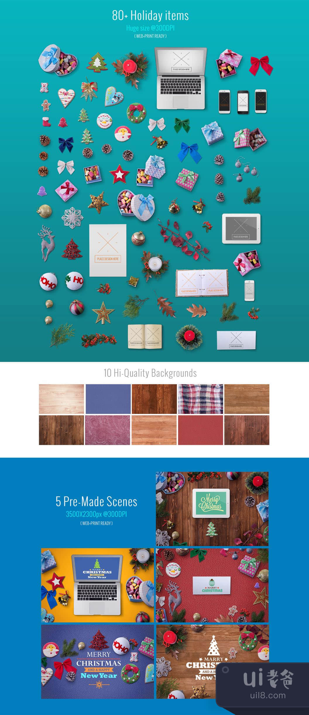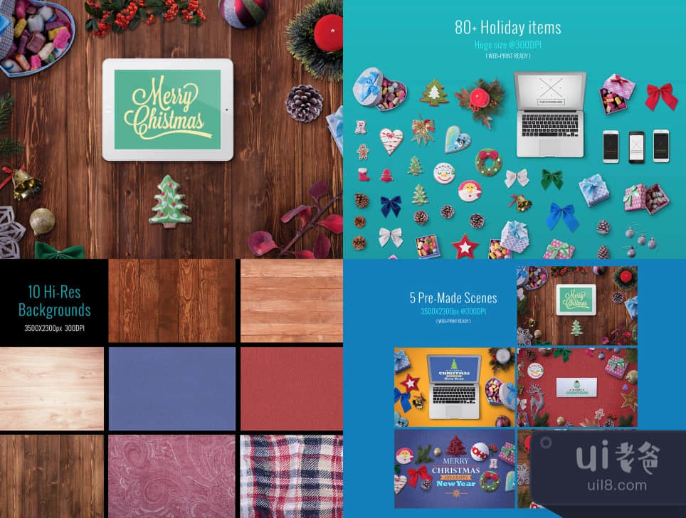 准备好迎接假期了吗?冬日假期场景生成器将为你提供创建可爱的设计和演示文稿所需的一切。所有80多个项目都是300DPI的,可以打印! 还包括10个高清晰度的纹理,非常适合任何项目。