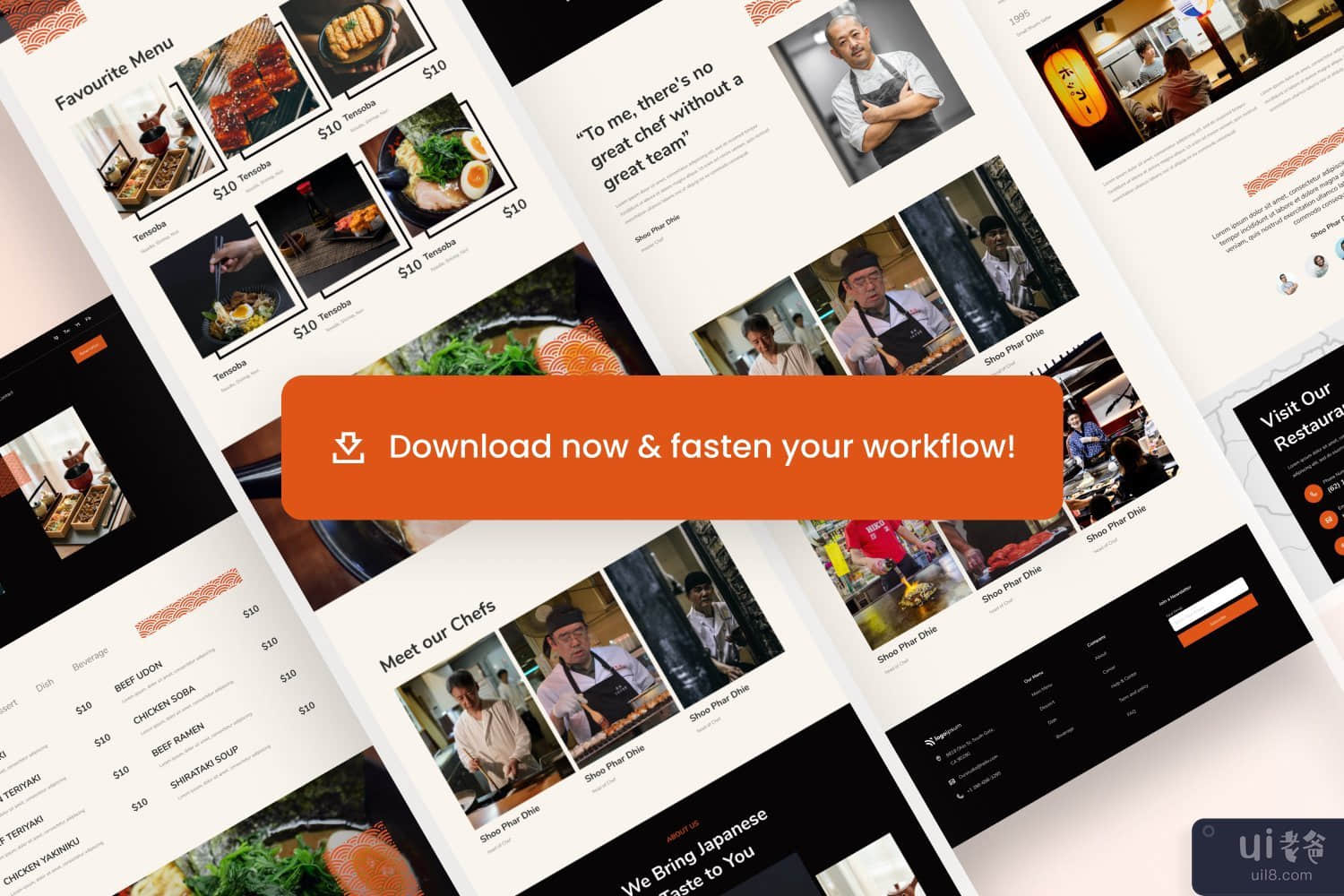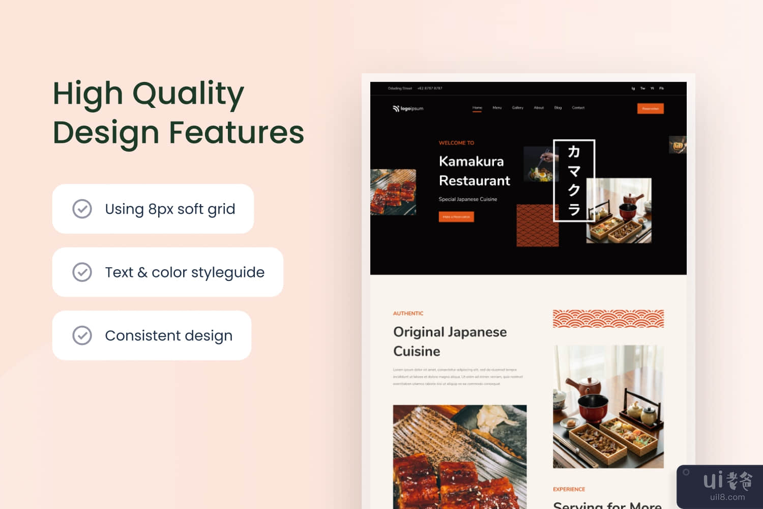 日本餐厅网站模板专为餐厅预订、咖啡馆和餐馆,多功能餐厅网站。