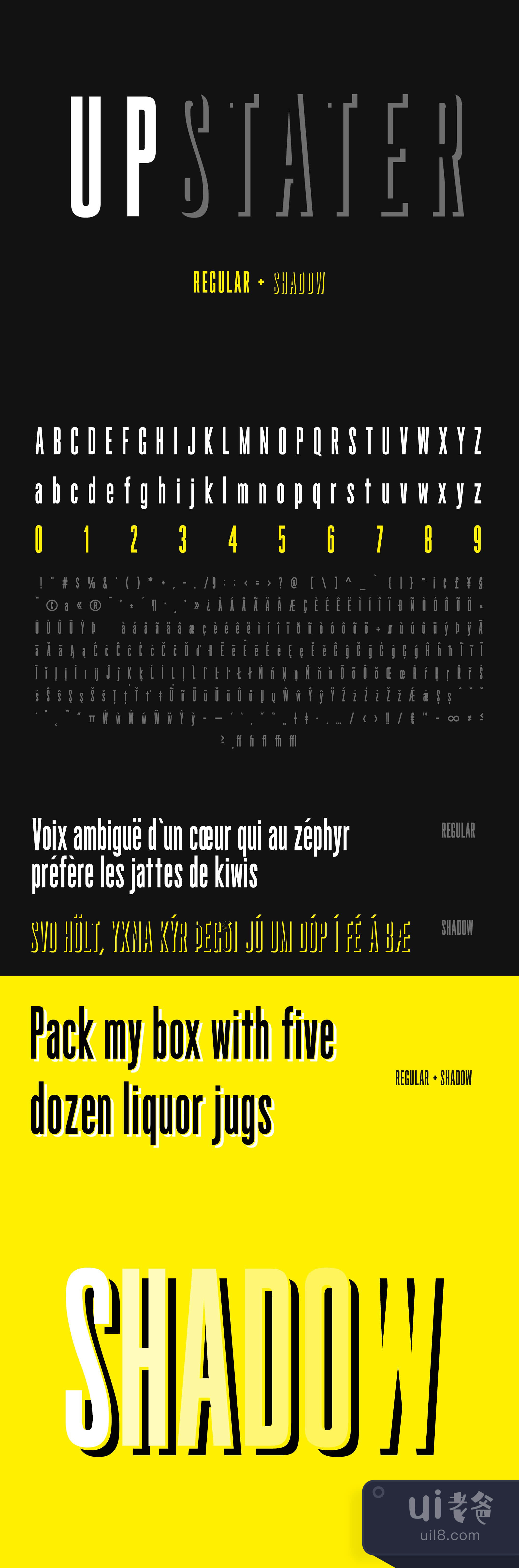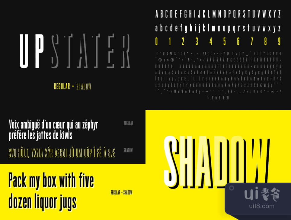 这是一种大胆而令人惊叹的新字体,包括两种风格,即常规和阴影,它们可以堆叠在一起,形成上面图片中的深度。Upstater是以5月16日在锡拉丘兹举行的首届 "创造北部 "活动命名的。这款字体的灵感来自于正在形成的历史,它有300多个字形,并且还提供了国际支持