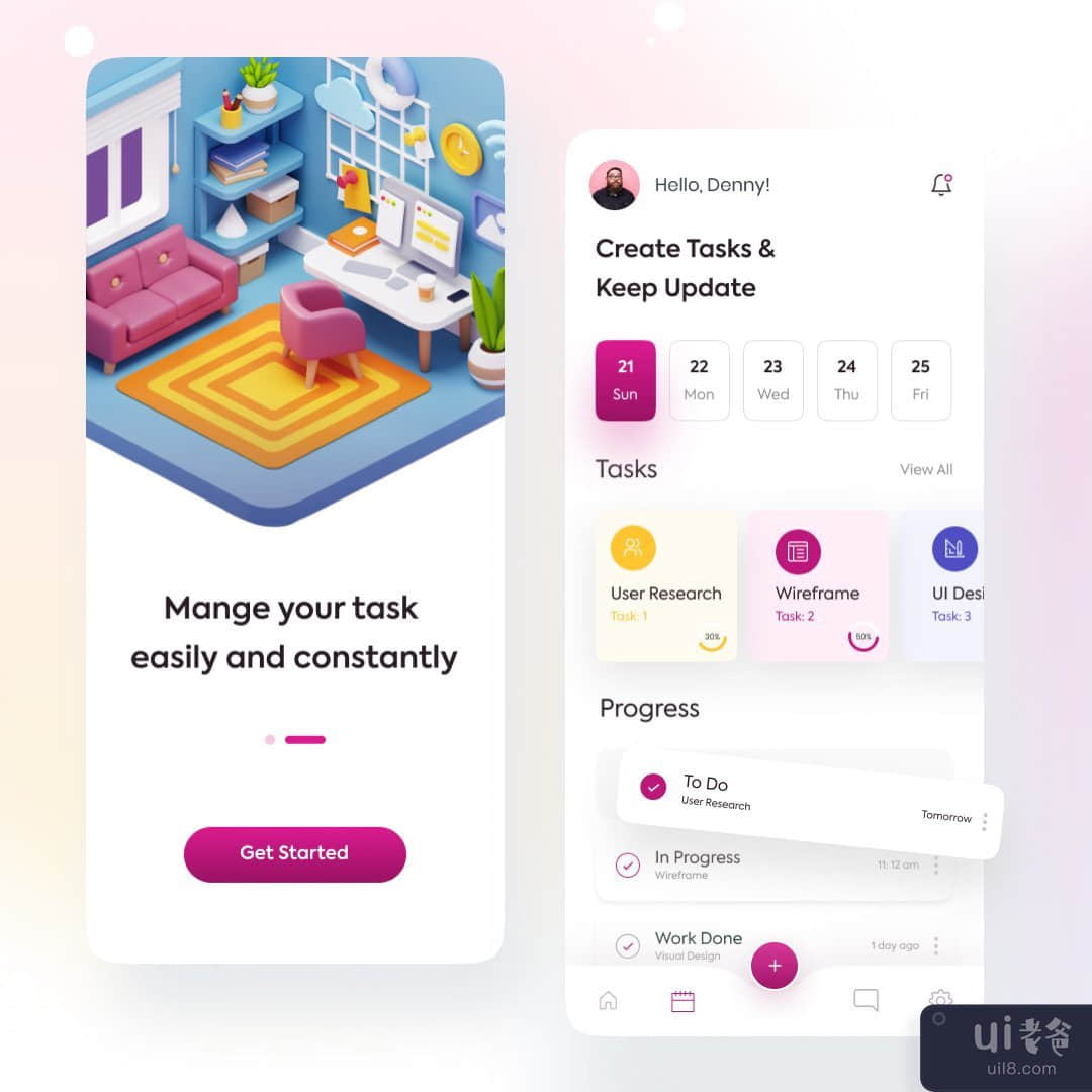 看看这个带有 3d 插图的项目管理应用程序的任务管理应用程序。为客户提供易于使用且功能简洁的界面至关重要。