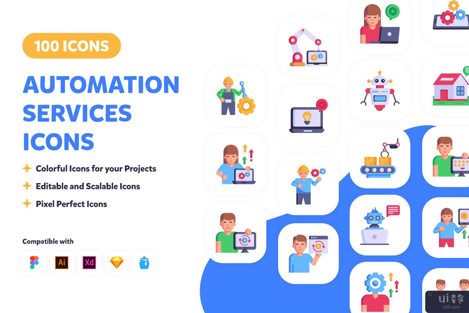 自动化并不是一个新概念,我们正在迅速实现各种工业流程的自动化。我们收集的平面矢量风格的自动化图标将帮助您将 Web 和移动项目中的自动化概念联系起来,并为它们增加价值。您可以根据自己的要求轻松自定义这些基于字符的矢量图标。