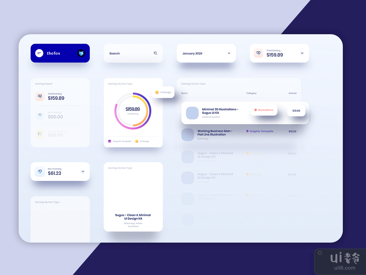 当前位置: 首页UI正文 仪表板元素 UI 工具包(Dashboard Elements UI Kit) UI 3年前 0 5.1K 4 收藏 -中文- 无效的 -英文- null 声明:本站所有文章,如无特殊说明或标注,均为本站原创发布。任何个人或组织,在未征得本站同意时,禁止复制、盗用、采集、发布本站内容到任何网站、书籍等各类媒体平台。如若本站内容侵犯了原著者的合法权益,可联系我们进行处理。kitui仪表盘元素工具包 Madbrains青铜用户 收藏 海报 链接