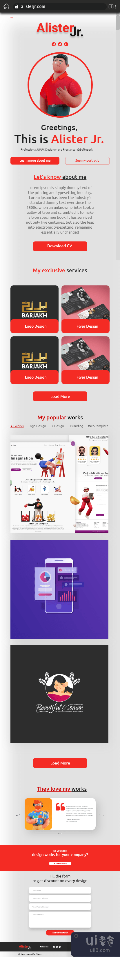 嗨设计师! 🔥🔥这是我的热门作品集网站“Alister jr”的网络应用程序版本。这是一个干净的作品集网站,将玻璃形态和 3D 插图完美结合。你觉得呢?请在评论部分告诉我!随时留下反馈,不要忘记按(L),不要忘记关注@Uilabs 帐户以获得很多很棒的互动。-------- ---------------想和我们合作吗?将您的业务询问发送至 tanvir.csm@gmail.com 感谢收看