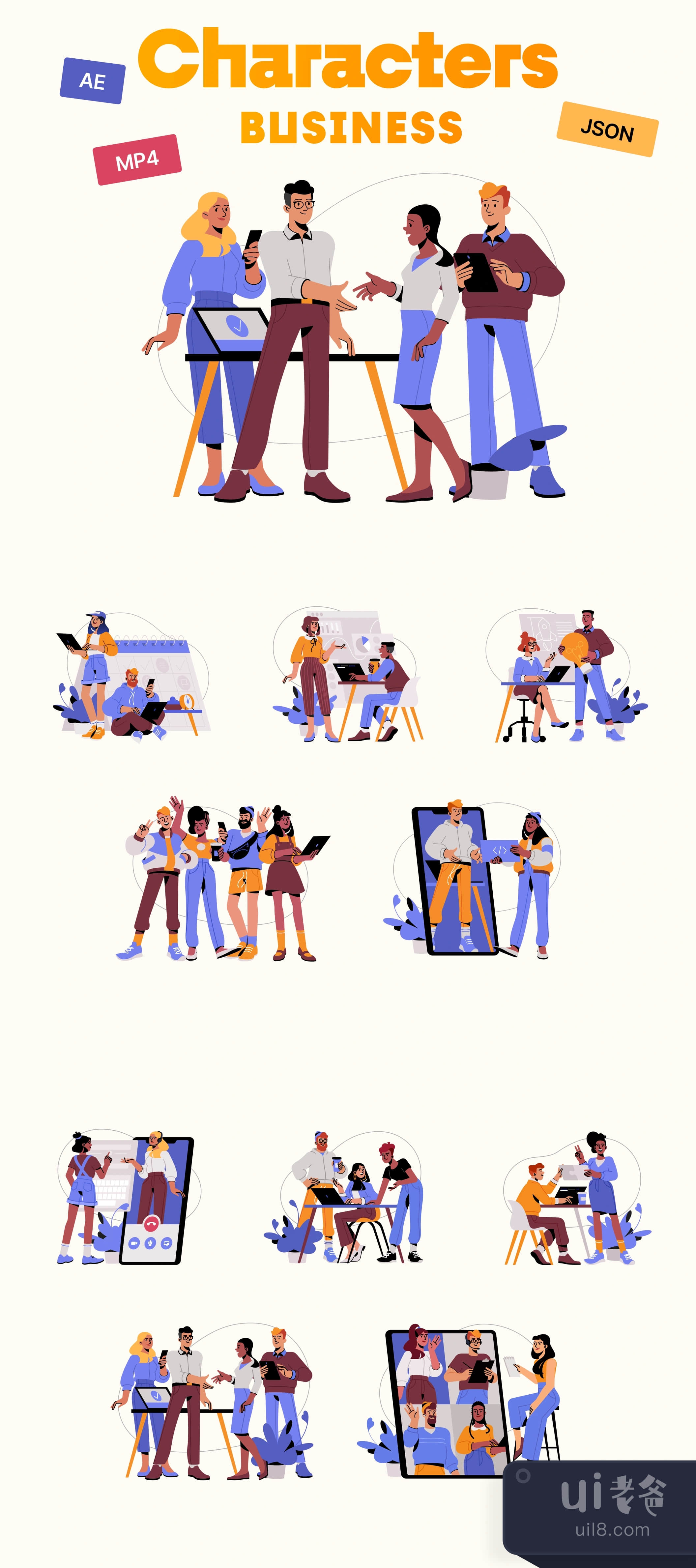 商业人物动画插图包 (Business Characters Animated Illustarti