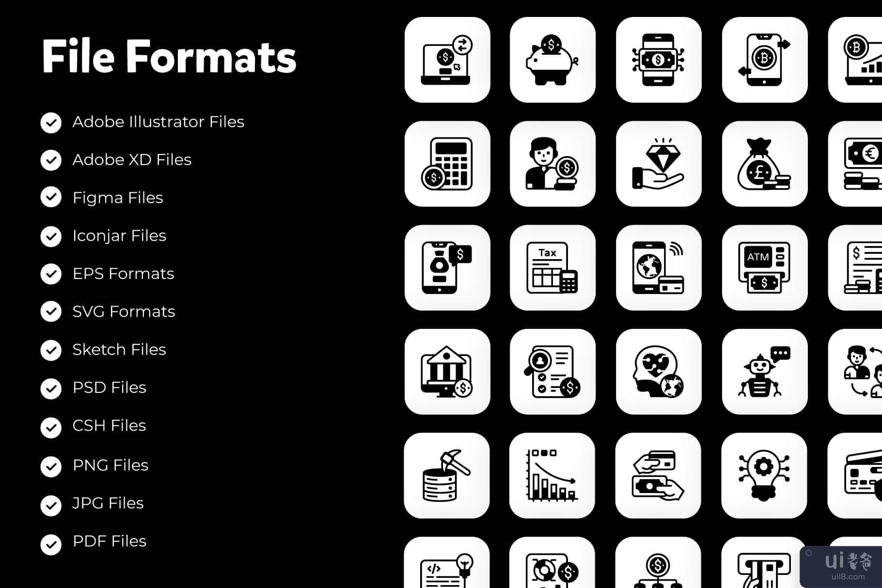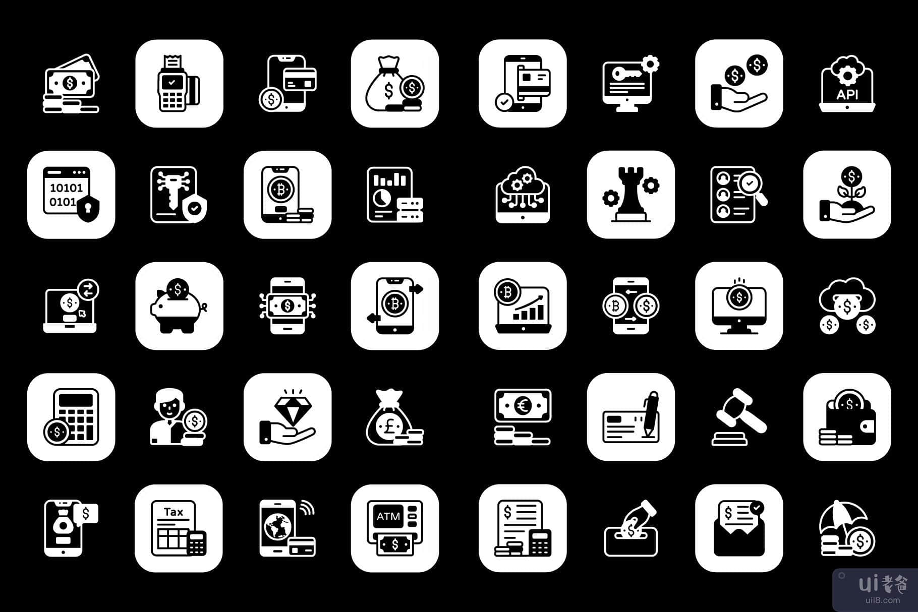 金融科技实体图标集(Set of Fintech Solid Icons)