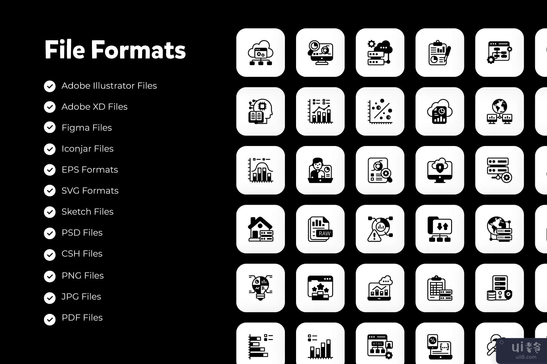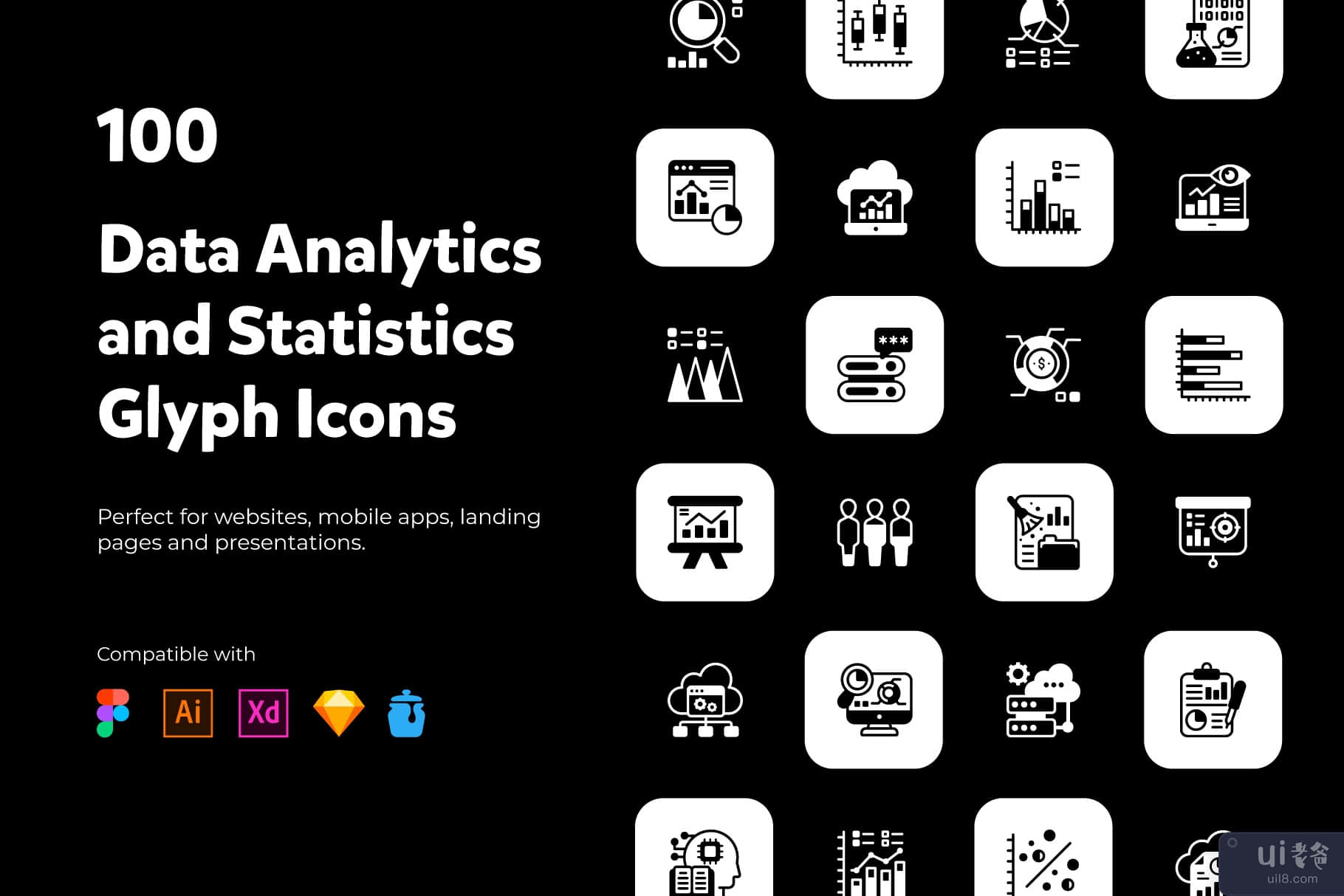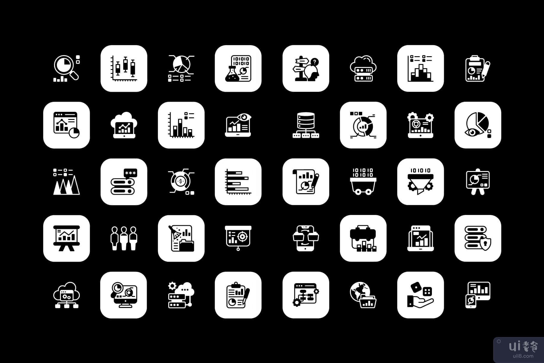 数据分析和统计实体图标集(Data Analytics and Statistics Solid Icons Set)