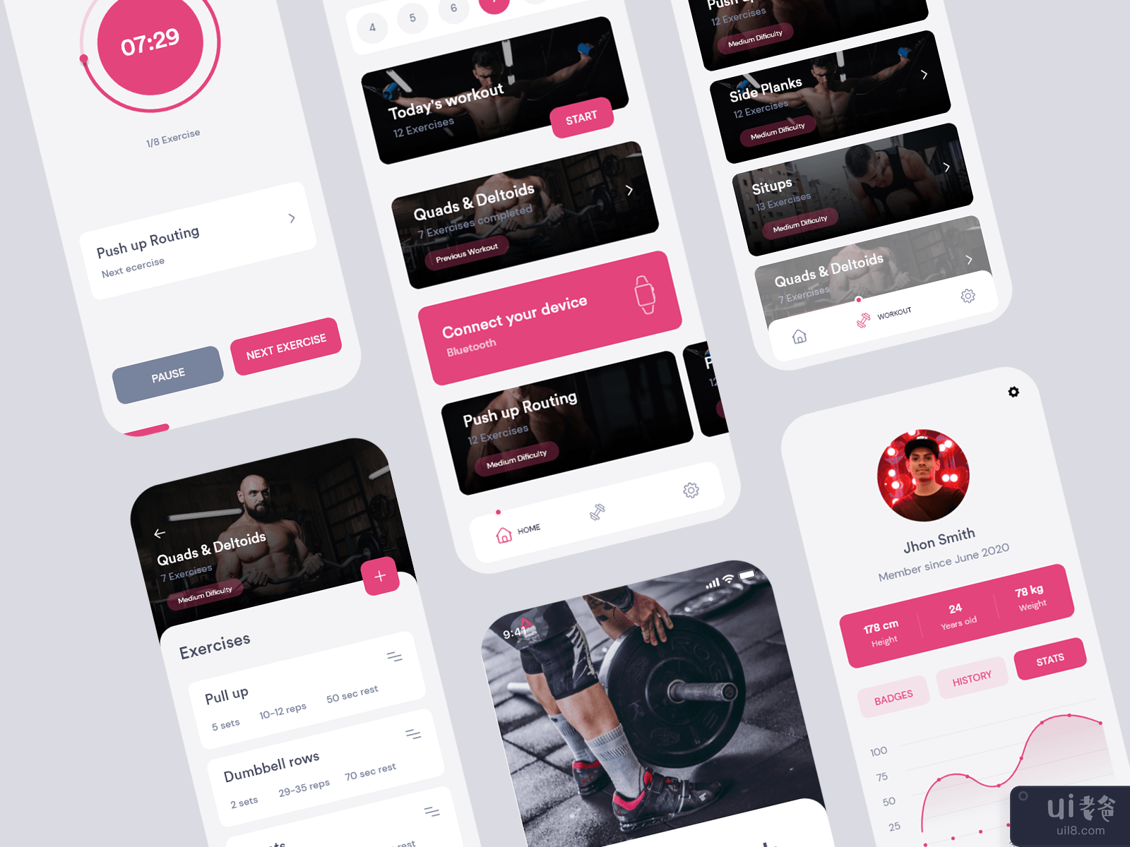 健身锻炼应用程序 UI 套件(Fitness Workout App UI Kit)